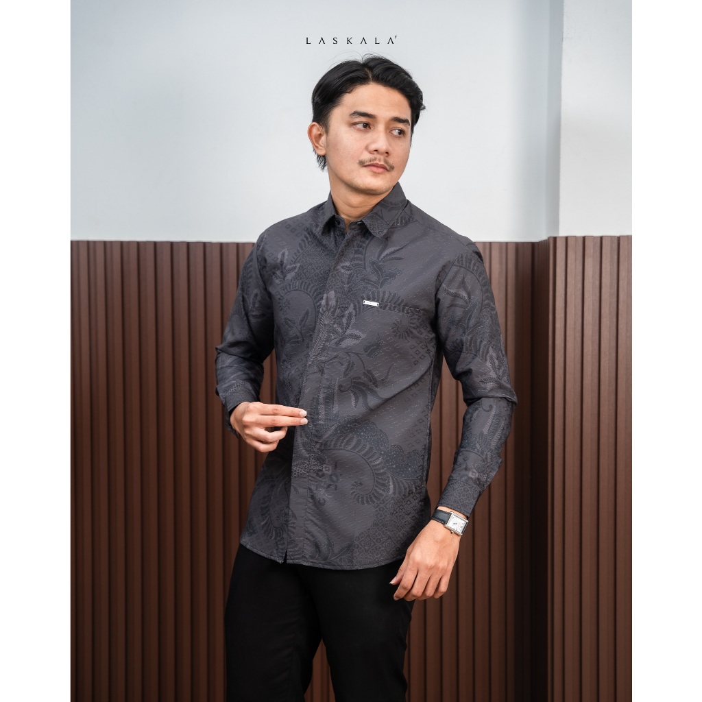 Laskala Batik Premium Harsa Kemeja Batik Pria Slimfit Lengan Panjang