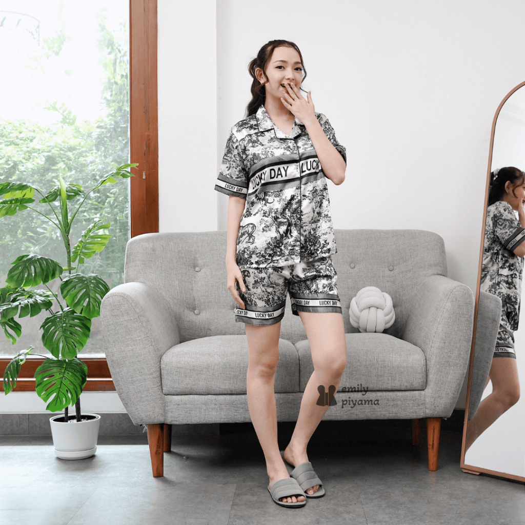 EMILY PIYAMA Baju Tidur Set Piyama Model Lucky Day Kemeja Bahan Satin Premium Pakaian Tidur Wanita Dewasa
