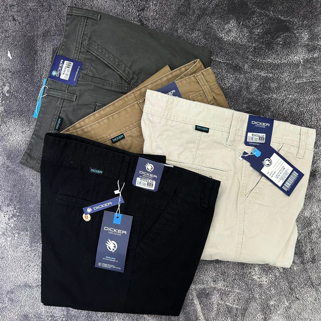 DICKER Celana panjang kanvas lembut original terbaru tidak melar hitam abu cream Moka