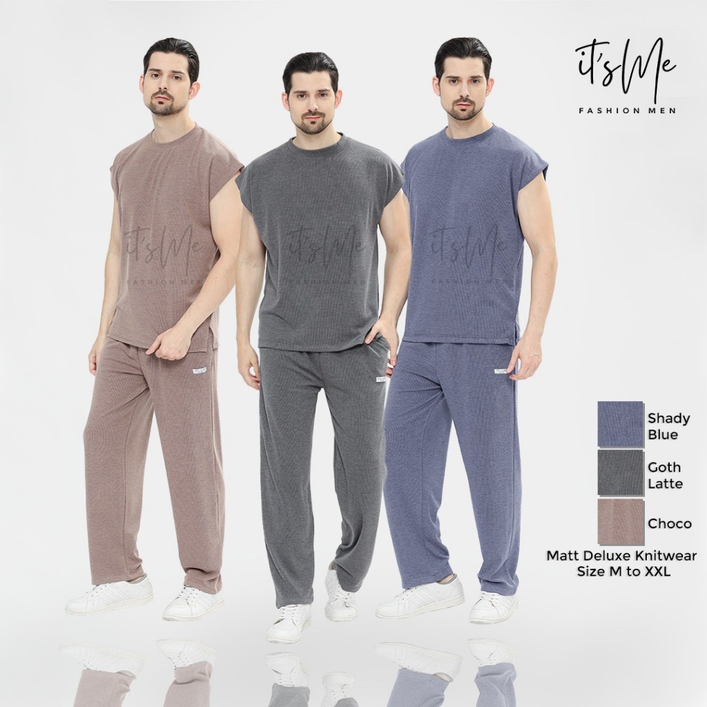 ITSME MEN - One Set Pria Knit Innocent Delux Sleeveles Celana Panjang | Oneset Daily Polos | Setelan