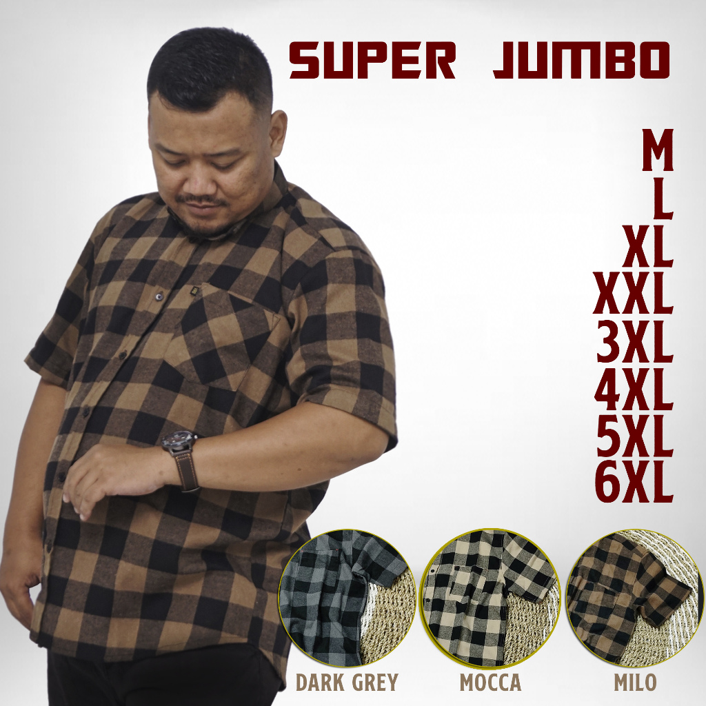 Kemeja Flanel Kotak Pria Super Jumbo Seragam Ukuran M sampai 6XL Seragam Kerja