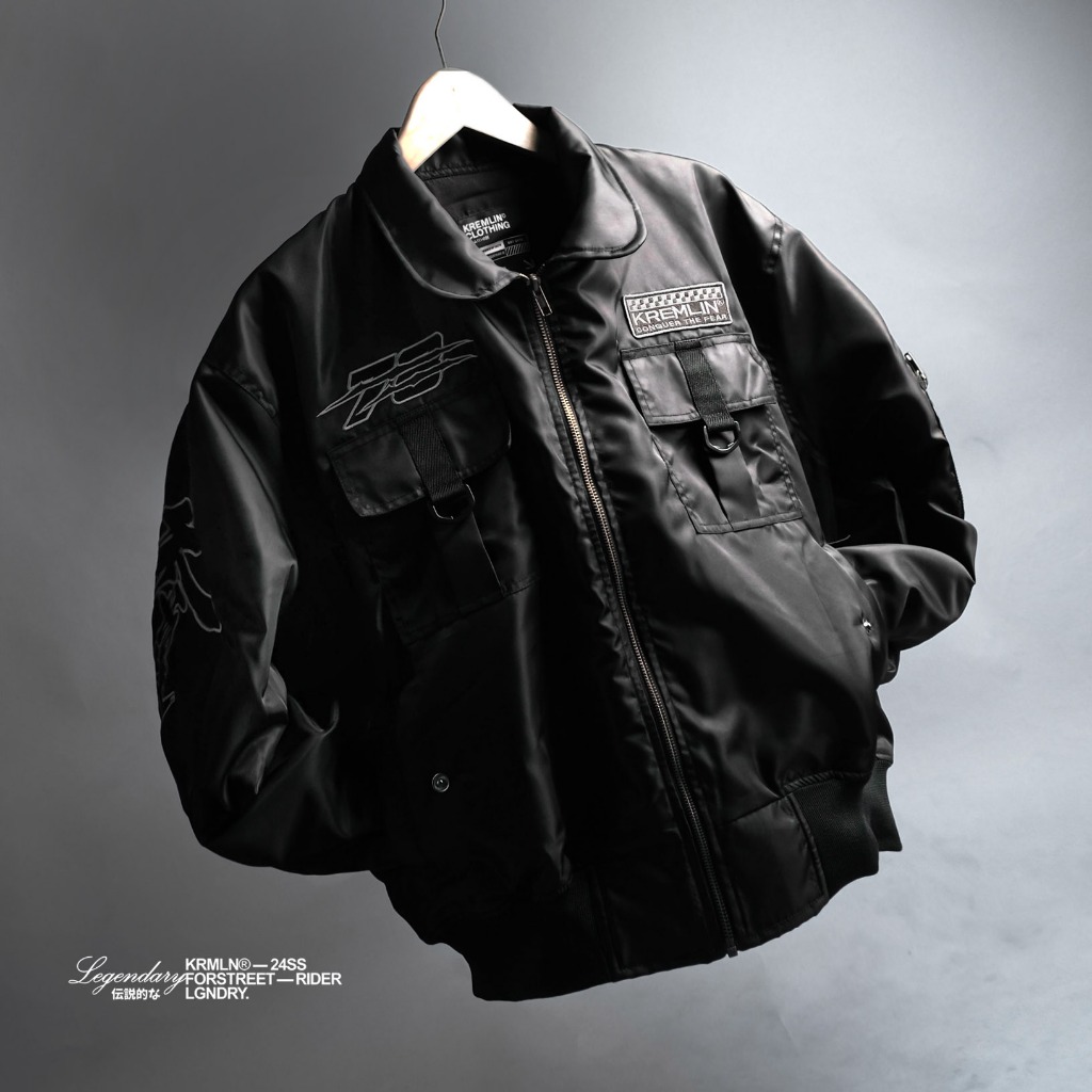 KREMLIN Bomber Jacket Boxy Black Biker - LEGENDARY