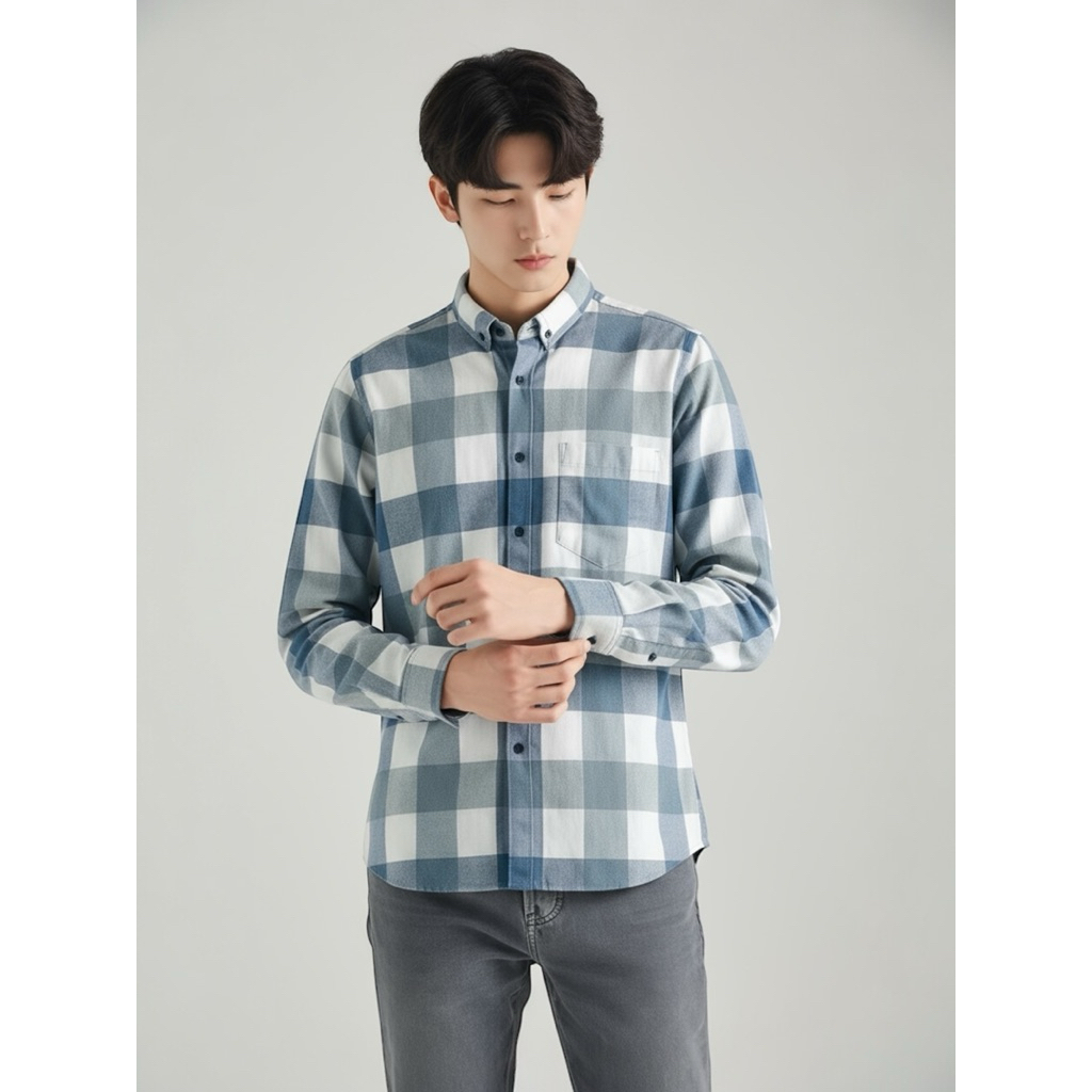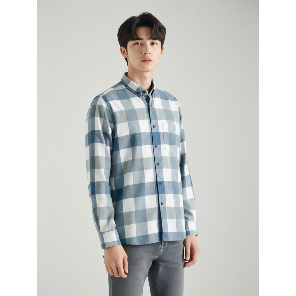 Peternation kemeja flanel pria wool basic panjang regular fit