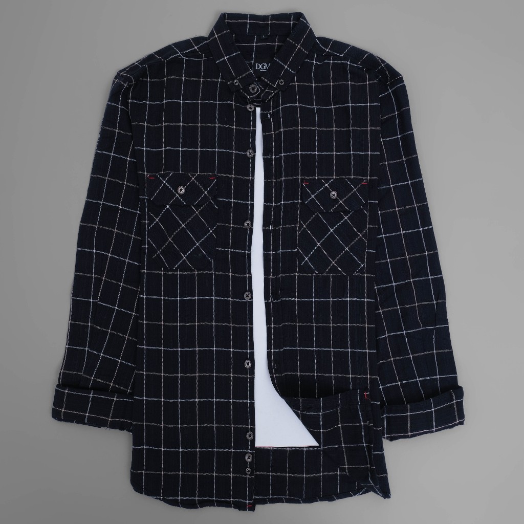 DGM kemeja pria Kemeja Flanel Double Pocket kemeja flanel pria flanel Kantong Dua 045
