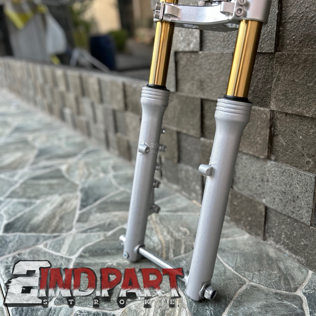 SKOK DEPAN SET SEGITIGA CNC AS 33/ SHOK SKOK MODEL NINJA RR AS kuning mengkilap BOTTOM SILVER PNP CBGLMPTIGER RX KING CRF 150L NINJA