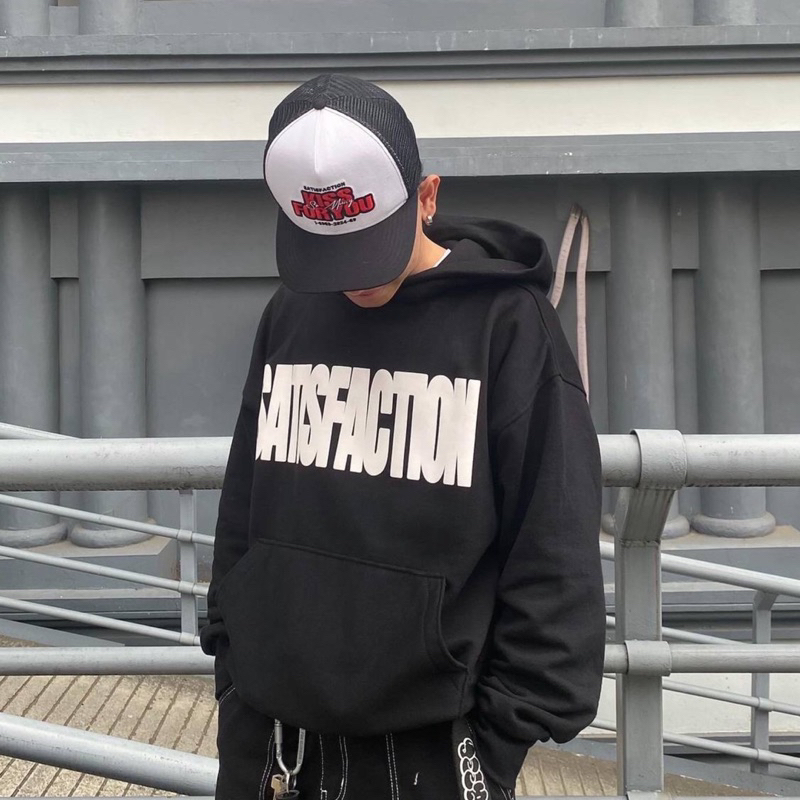 Satisfaction Hoodie Boxy 375GSM Black Cotton Fleece