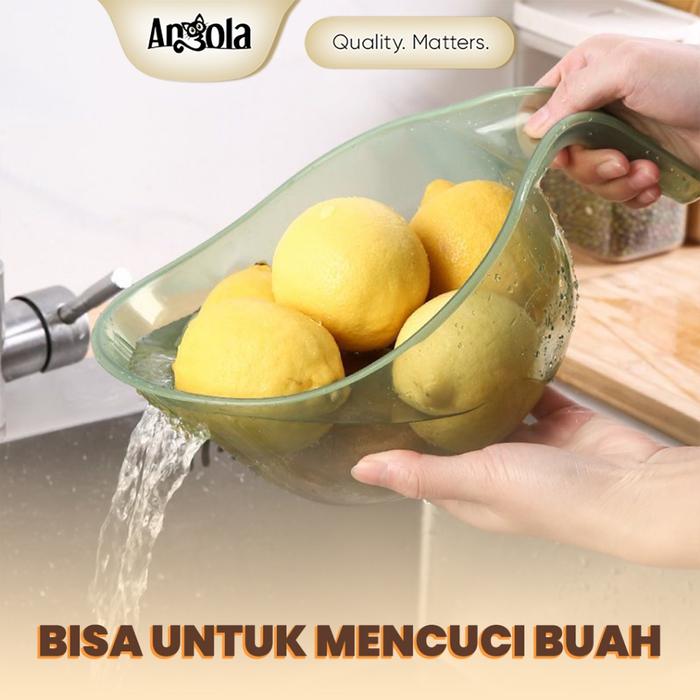 TP Angola Wadah Tempat Cuci Beras L03 Baskom Saringan Pencuci Buah Sayuran Serbaguna Food Grade PP - Putih Transparan