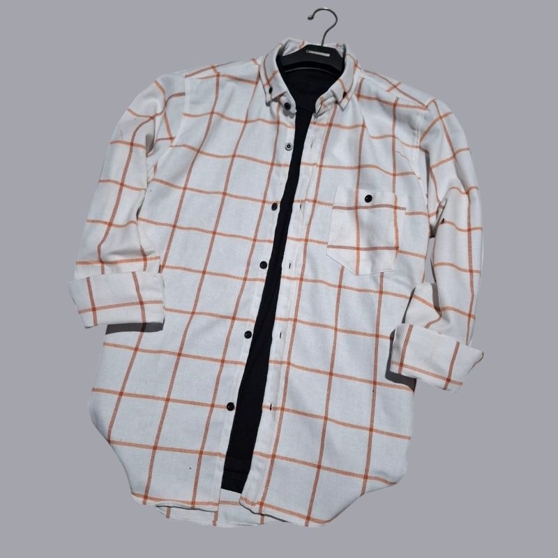 kemeja kotak kotak formal flanel lengan panjang pria wanita unisek premium veterano