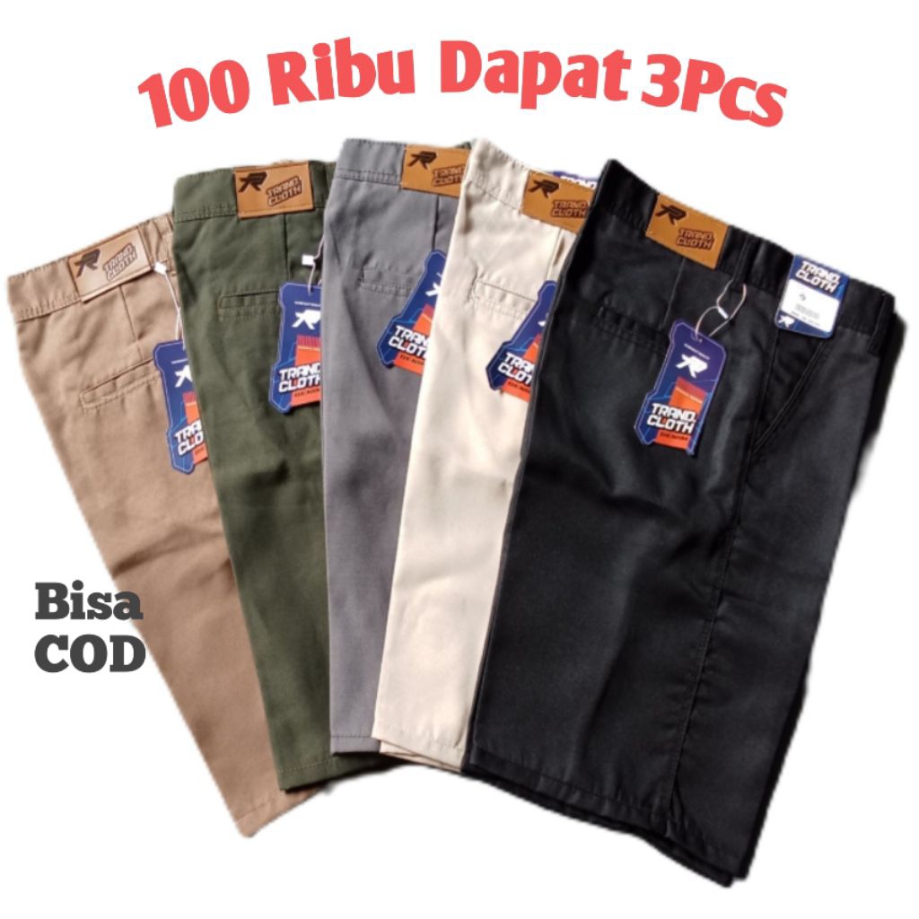 DAPAT 3 PCS Celana Chino Pendek pria Premium Polos Non Stretch