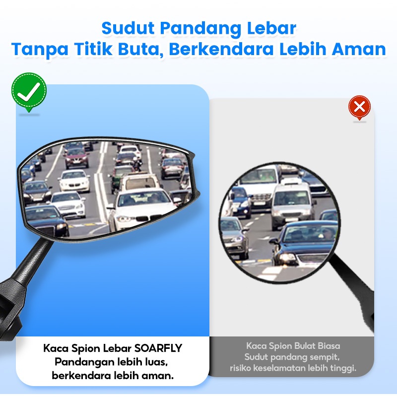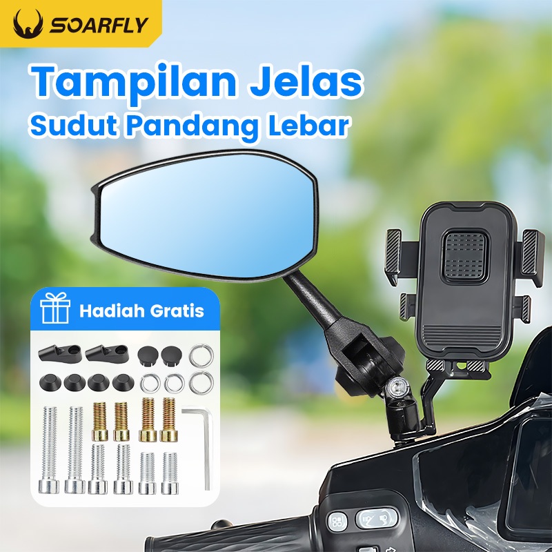 SOARFLY Spion Motor Cermin biru dan putih anti silau/ spion spion variasi universal semua motor spion lipat/dapat diputar 360 derajat