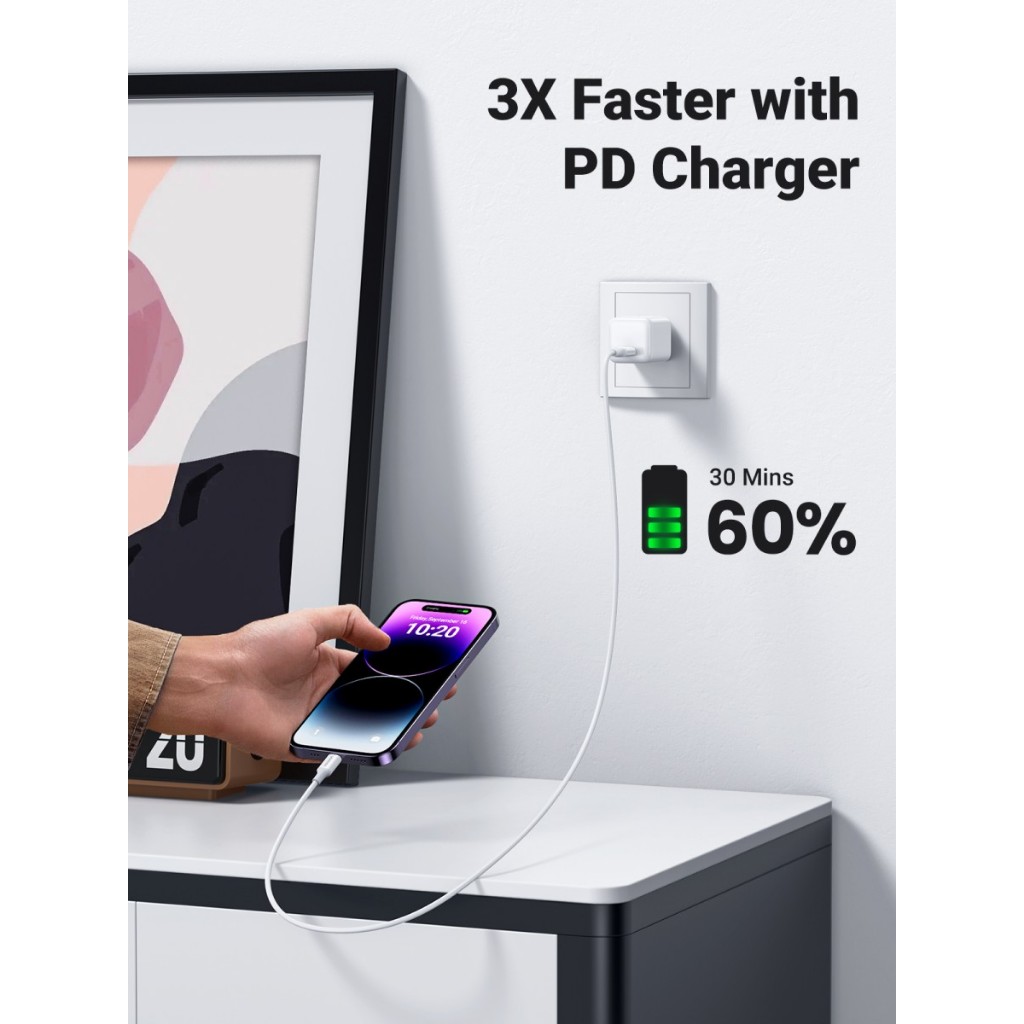 UGREEN Kabel Charger Data iPhone 14 13 12 11 Series Type C to Lightning Mfi Fast Charging