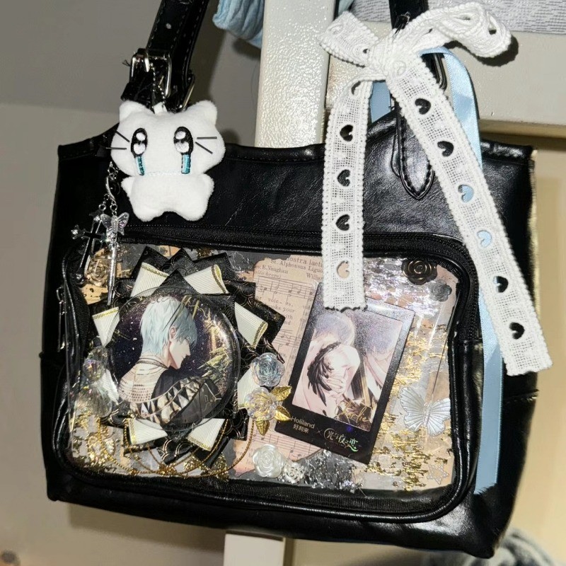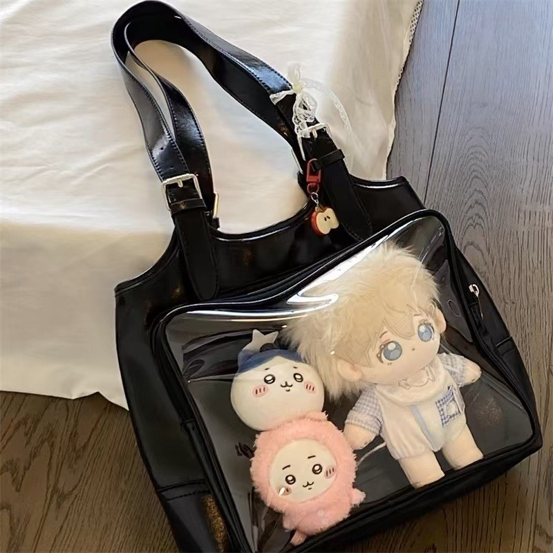 [Penjual Lokal] Transparan Jepang tas nyeri /Itabag Kulit Lucu Pvc Transparan/Kpop Gaya el Wanita Korea Hitam itabag ra