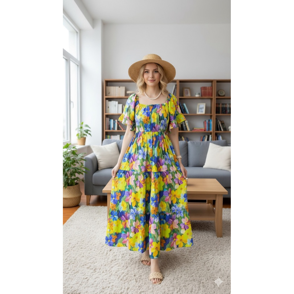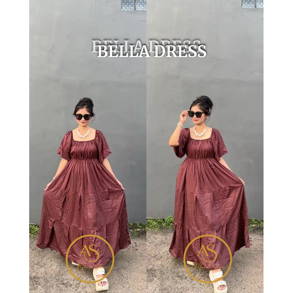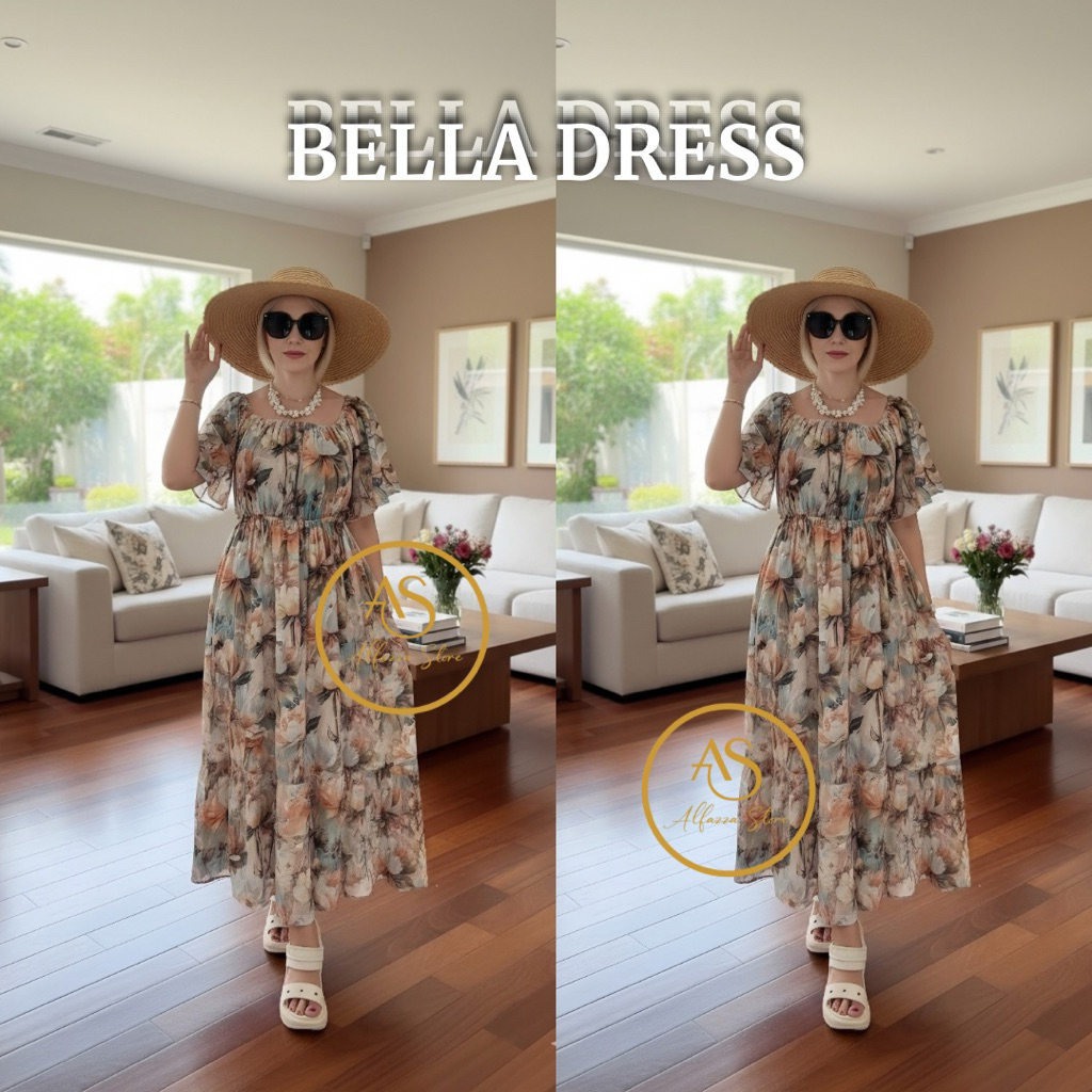 ALFAZZA BELLA DRESS MIDI WANITA RAYON VISCOSE MOTIF CASUAL BAJU PANTAI BUSUI BUMIL