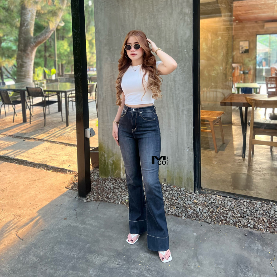 MCO JEANS - Jeans 47 | Celana Cutbray Jeans Wanita Evolution Monica Cutbray Kaki Tebal Highwaist Panjang Stretch Monica Black Wash