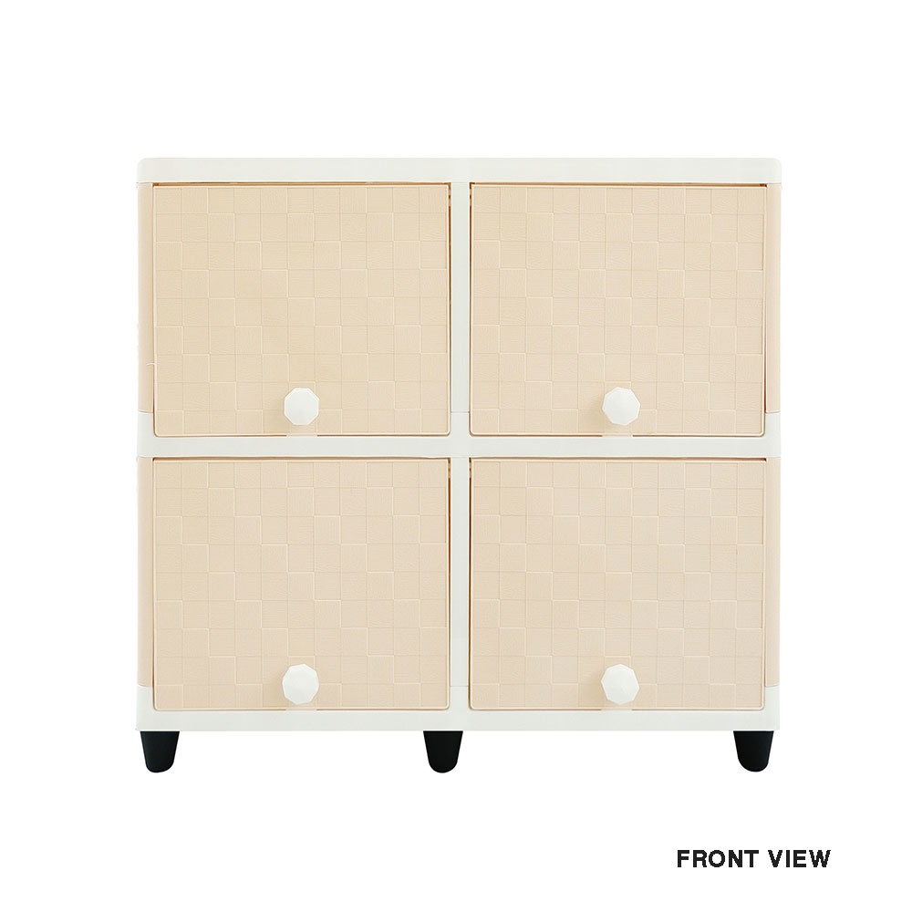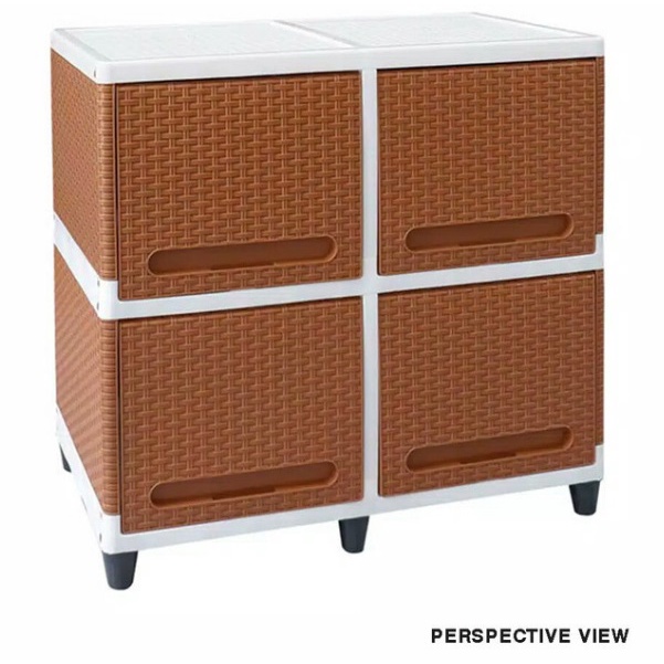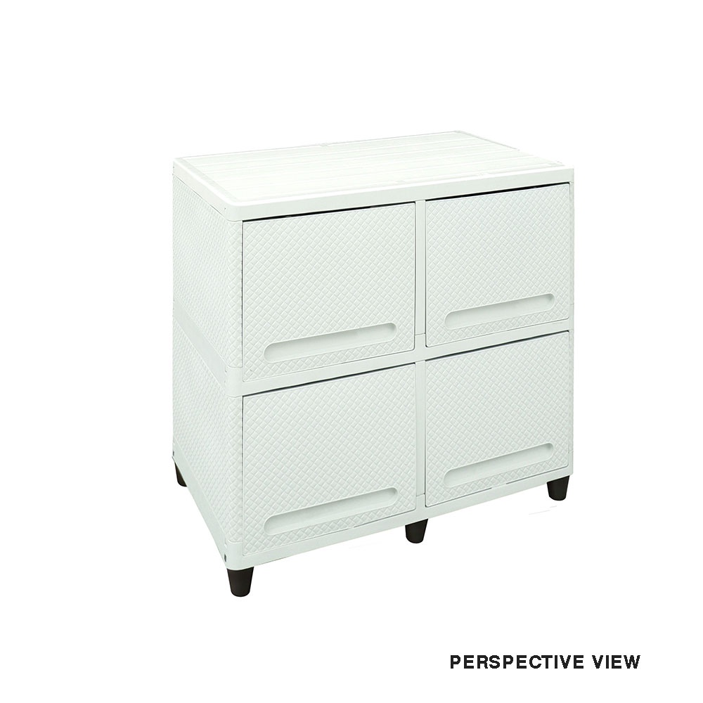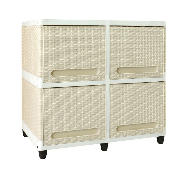 CLUB Lemari pakaian plastik 2 susun double flip rattan rotan 4 pintu 2 rak putih coklat warna warni