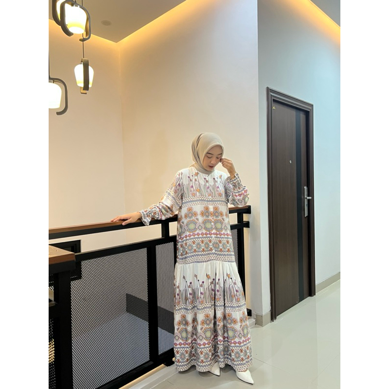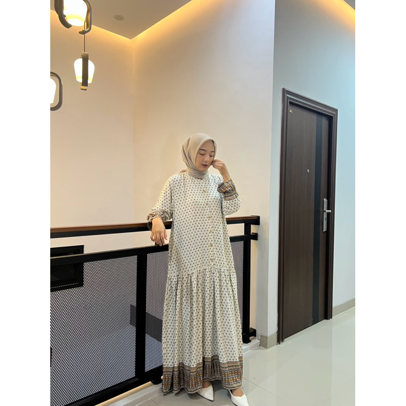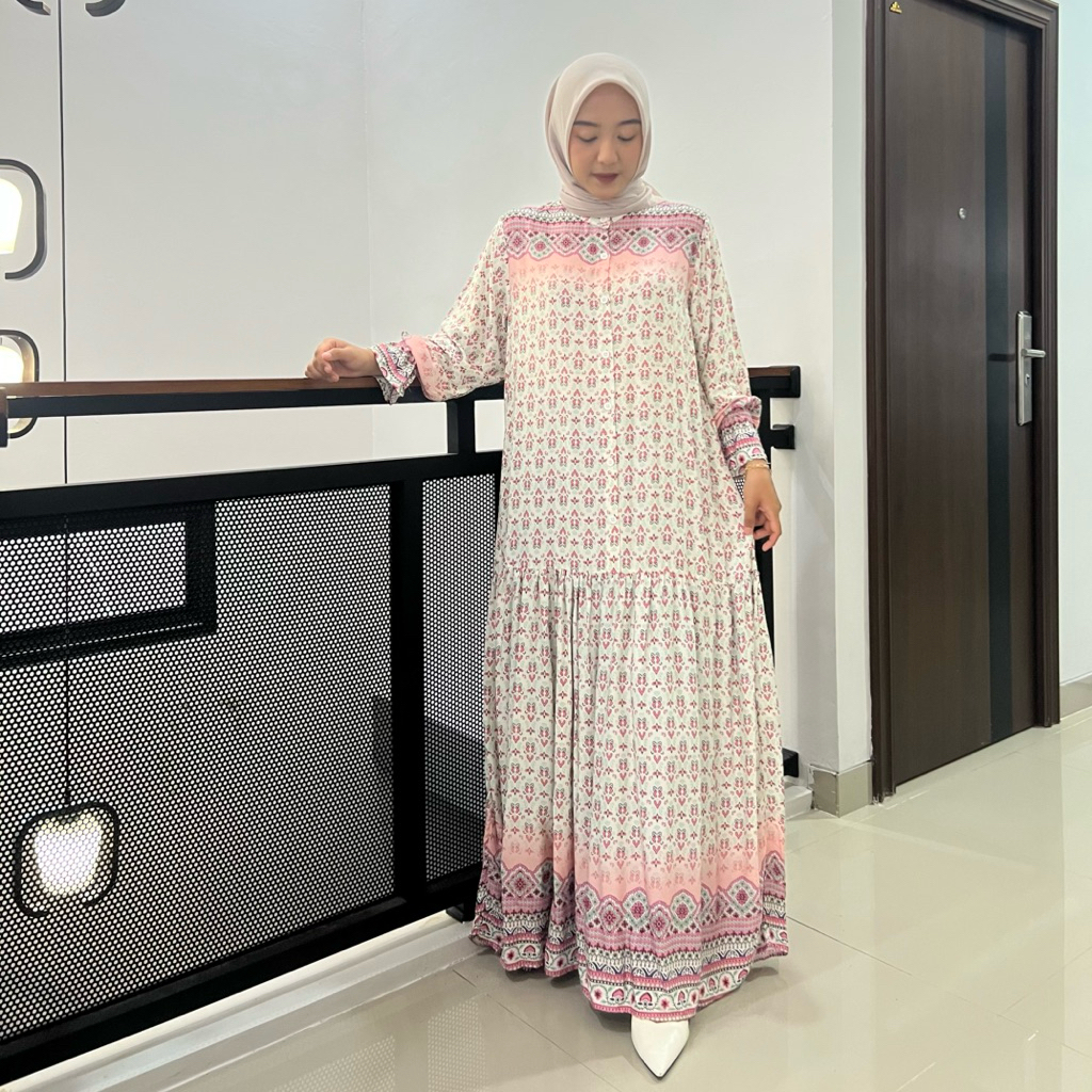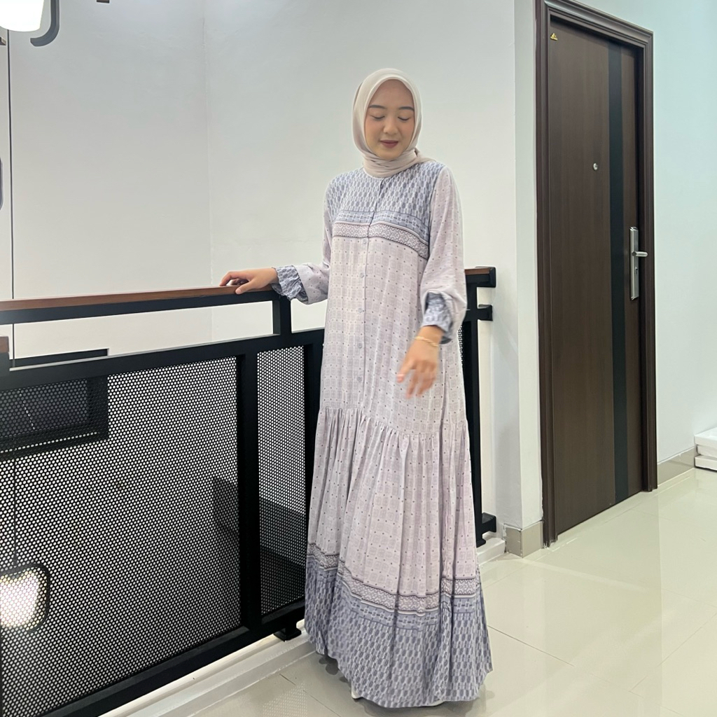 Aleya Dress Rayon Motif Gamis Rempel Kancing Wanita