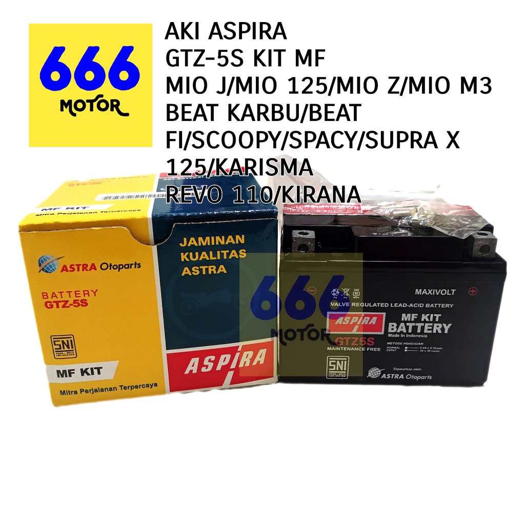AKI ASPIRA GTZ5S KIT MF MIO J,MIO 125,MIO Z, MIO M3, BEAT KARBU,BEAT FI,SCOOPY,SPACY,SUPRA X 125, KARISMA, REVO 110,KIRANA ASLI