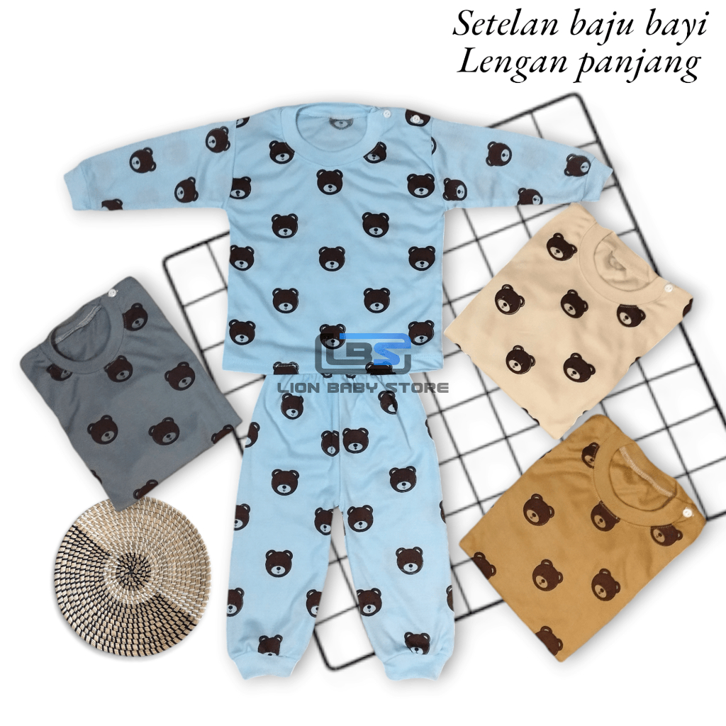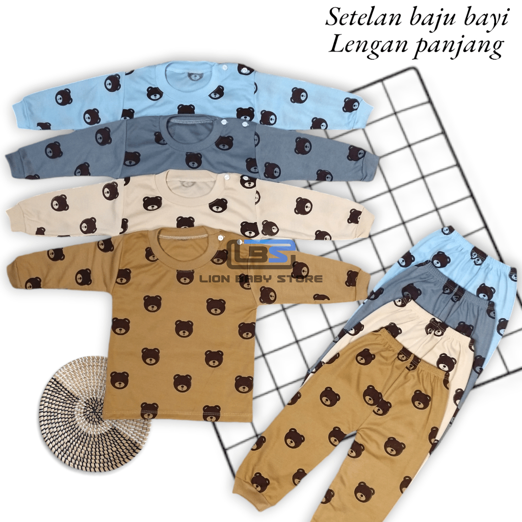 [Mall] Baju Bayi 4 Setel Baju Bayi Setelan Panjang laki-laki Perempuan Piyama Bayi Motif kepala beruang 3-18 bulan