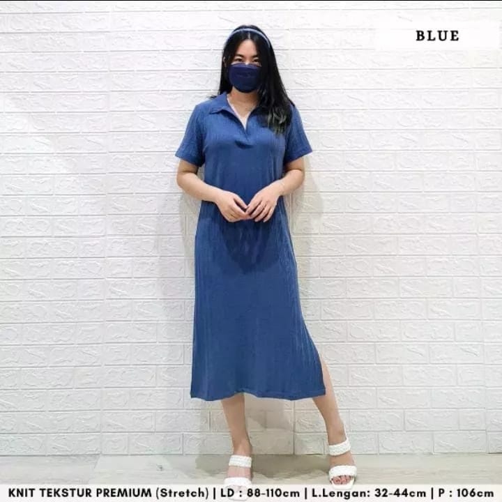 MATILDA KNIT SLIT DRESS CNY POLOS RIB RAJUT PREMIUM DRESS KERAH COLLAR