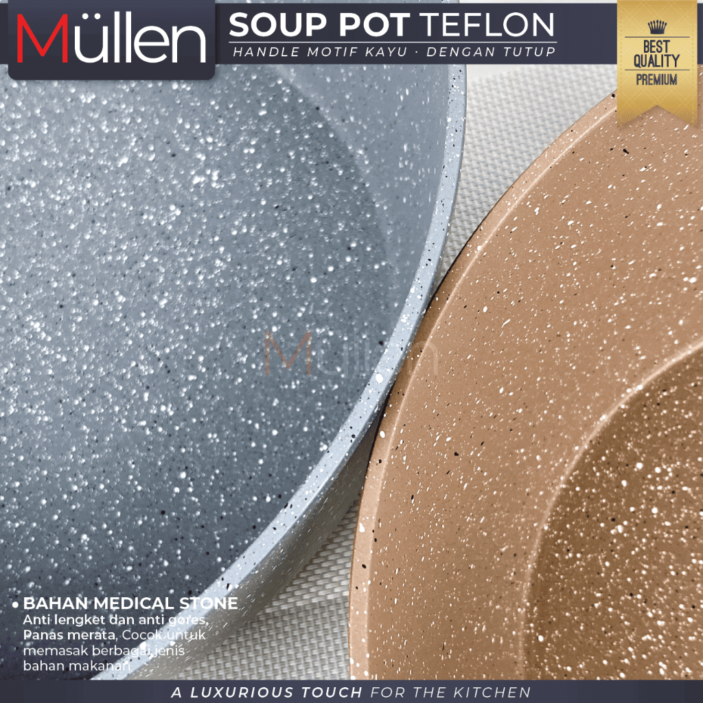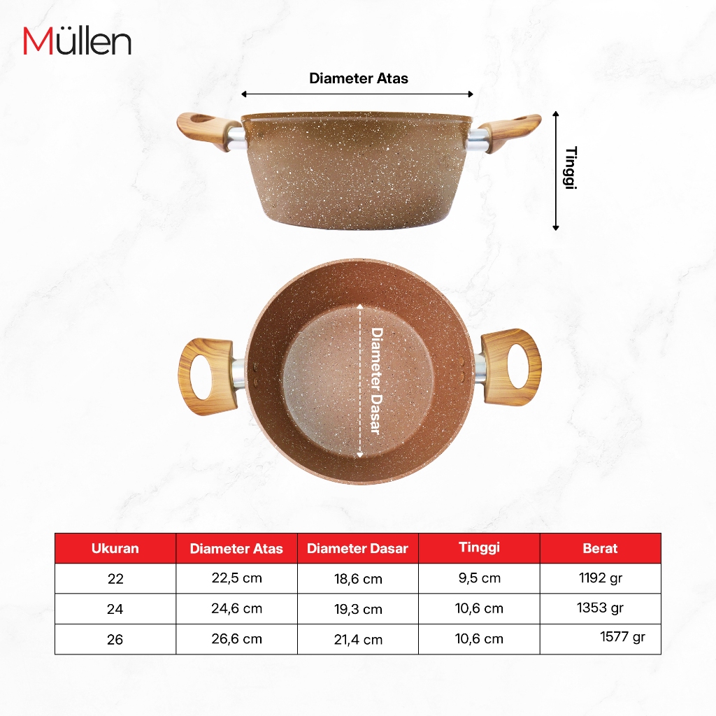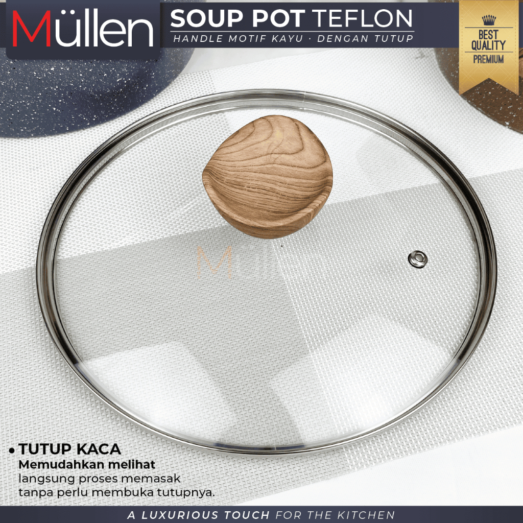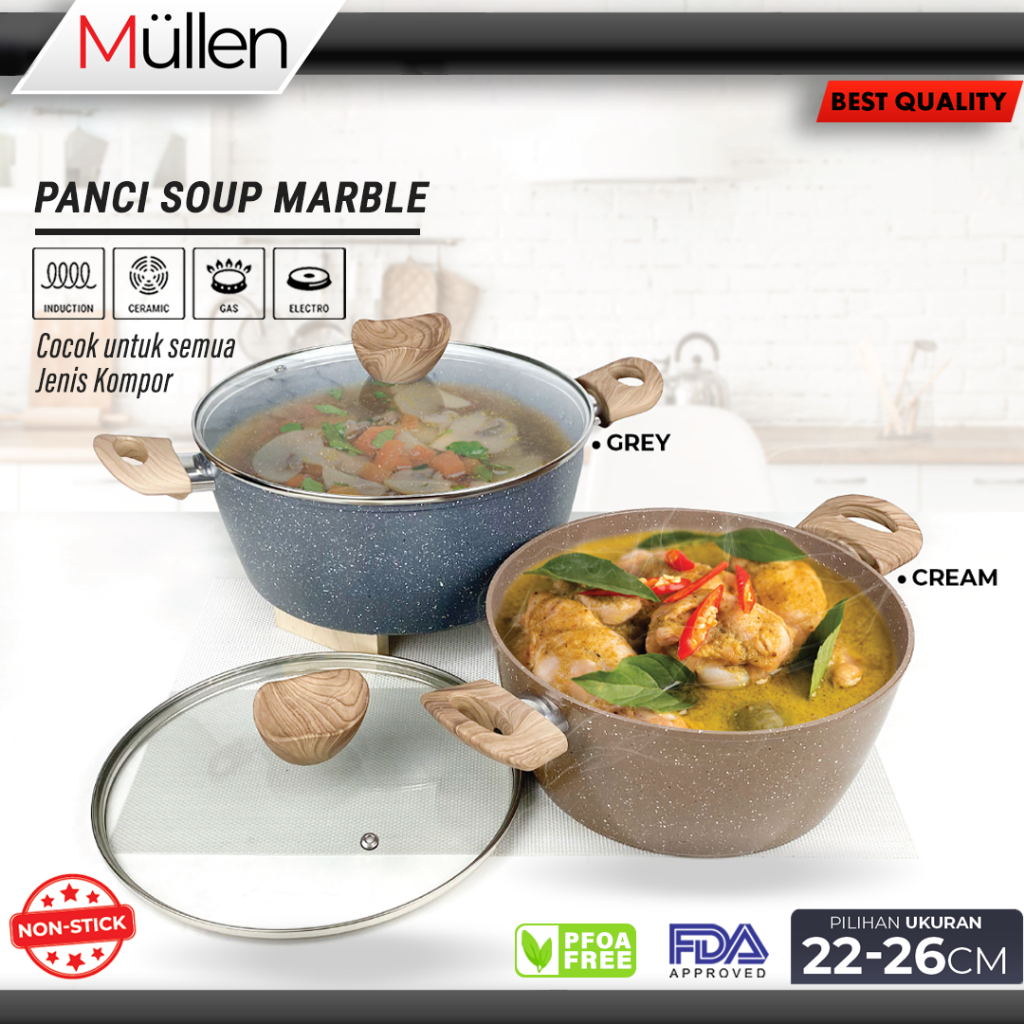 Mullen Panci Soup Tutup Kaca Induksi Marble Double Bottom Wajan Panci Sup Panci Sop Anti Lengket Ukuran