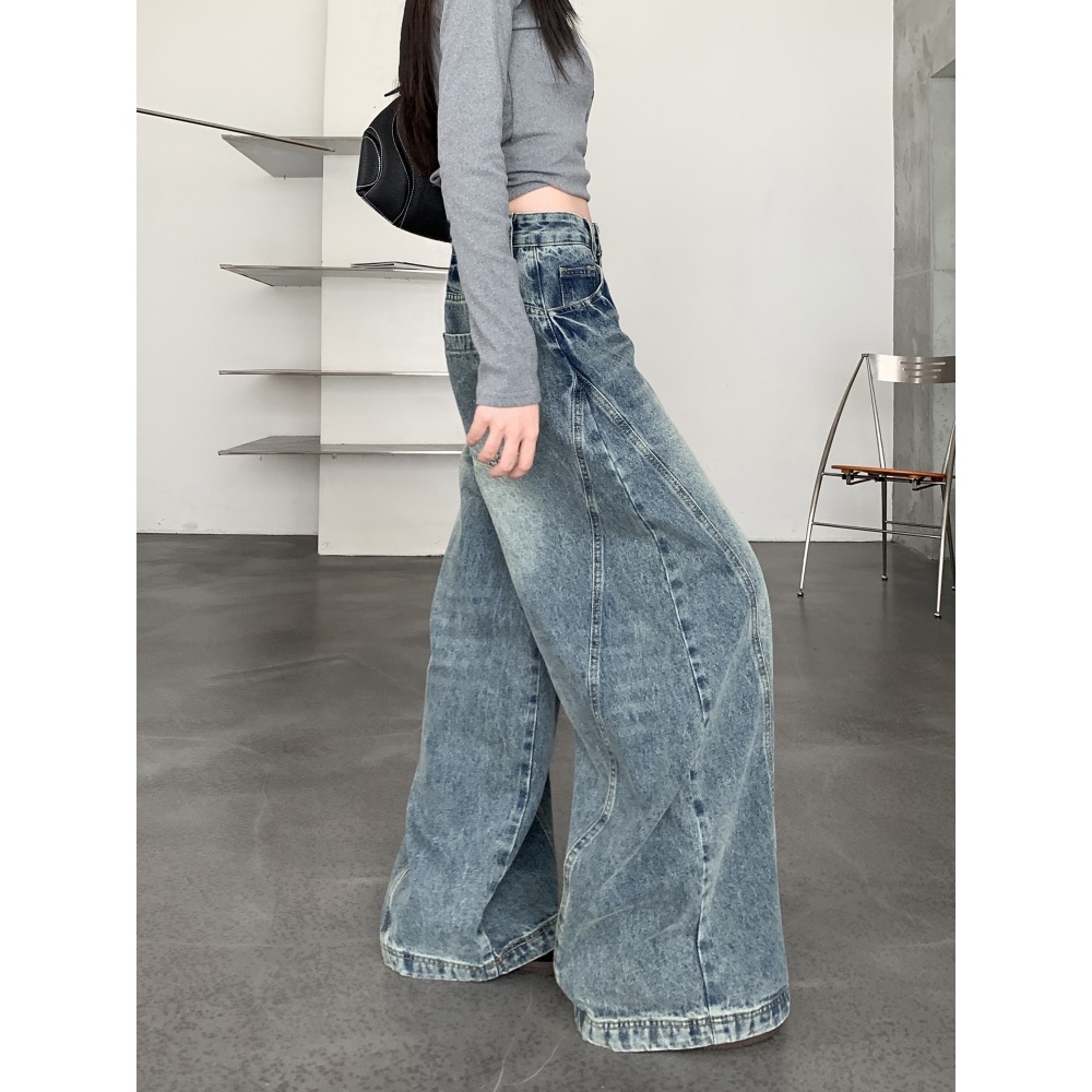 lulu jeans-Biru Retro Highwaist koult Celana Jeans Wanita baggy baggy Jeans Korean--Celana panjang yang besar--Cocok untuk obesitas