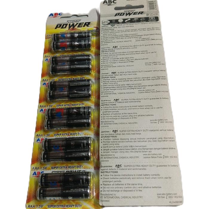 BATERAI BATRE BATTERY AAA A3 ABC HITAM SUPER POWER BATERE REMOTE TV AC MAINAN ANAK ANAK - 1renceng 12pcs