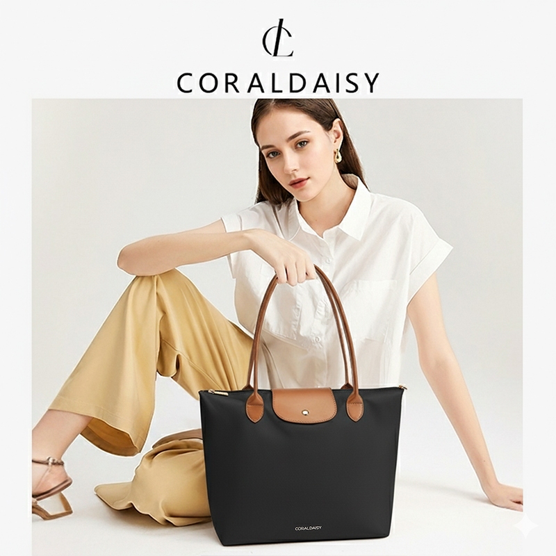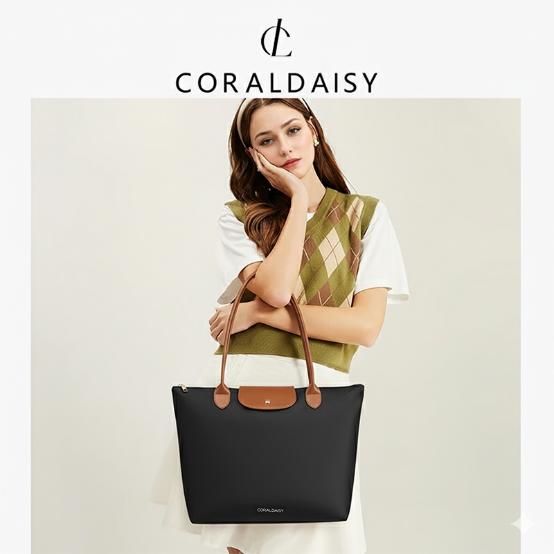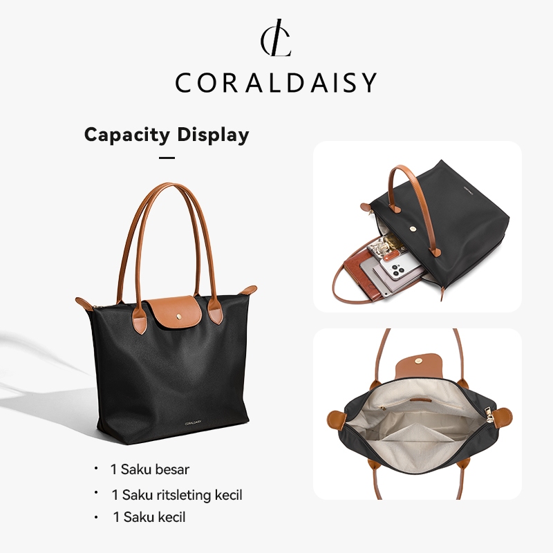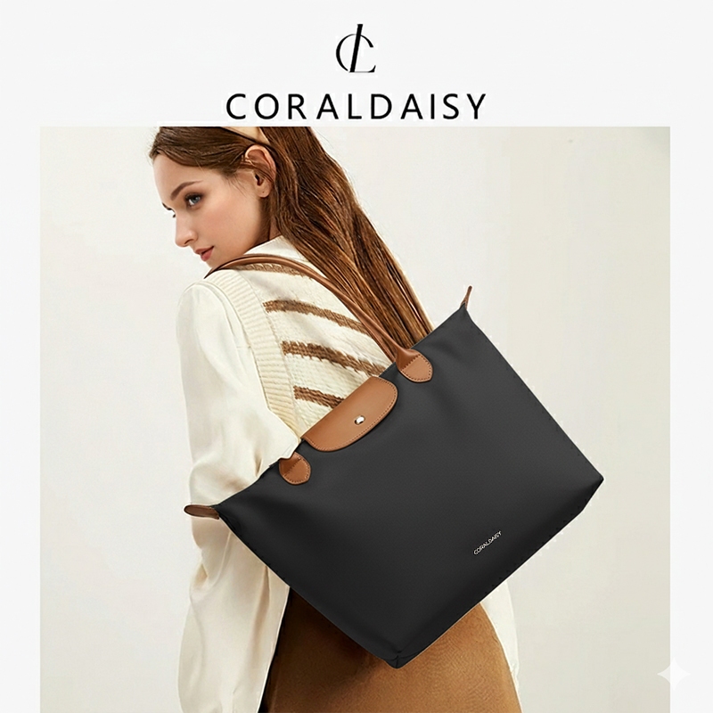 CORALDAISY Tas Wanita 2025 Terbaru Tote Bag Ritslet Kapasitas Besar Shoulder Bag Laptop Tas Jinjing