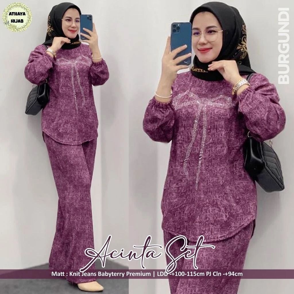Fashion Wanita Acinta Set Setelan Wanita Remaja dan Dewasa Kekinian Bahan Knite Jeans Babytery Premium - Baju Setelan Perempuan Mewah Elegan