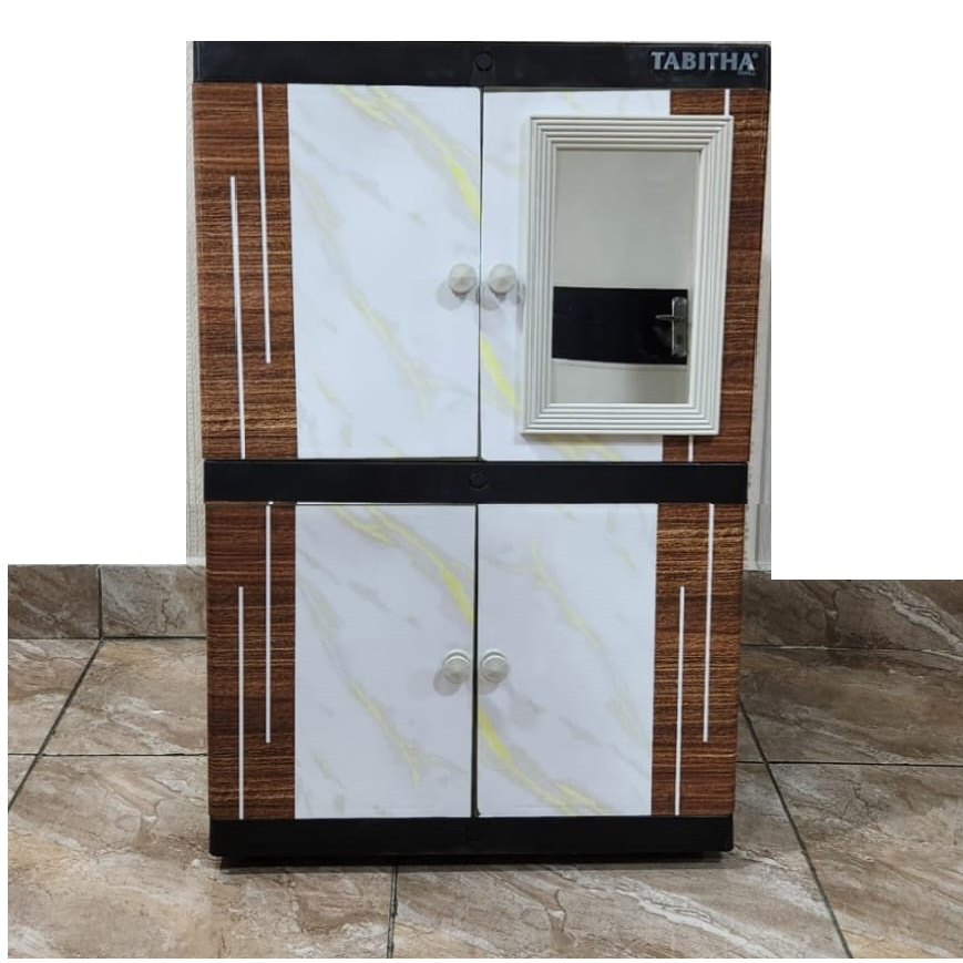 Lemari Baju Plastik 2 Susun TABITHA SP KACA CERMIN FULL KUNCI MURAH KOKOH JERAPAH