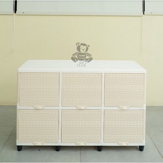 Murah Lemari Pakaian Baju Plastik triple club flip 2 susun Rak TV Rotan Buffet TV 6 kotak
