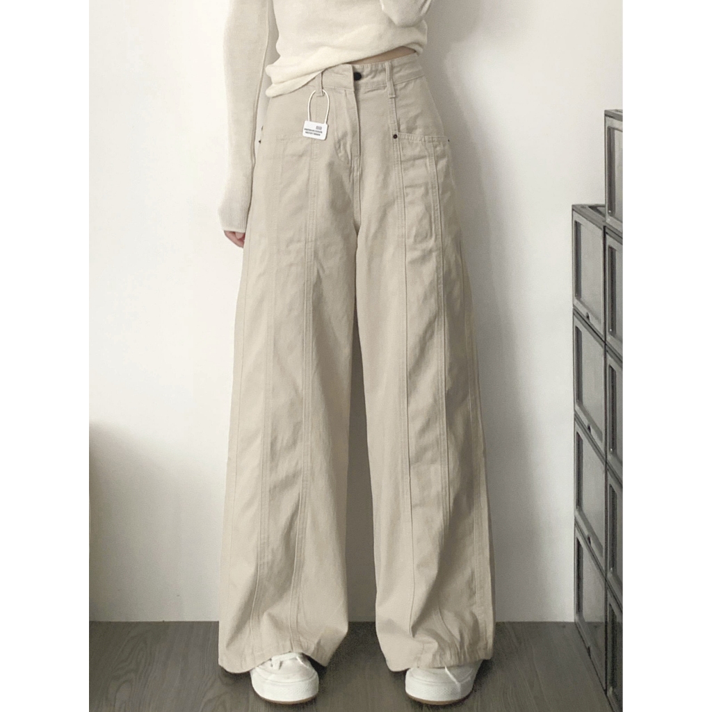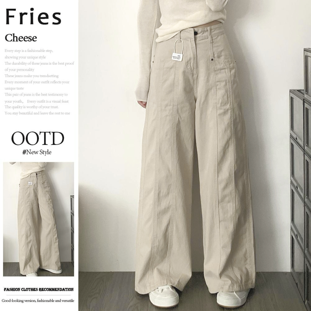 Jeans kerja aprikot untuk wanita musim panas 2025 baru pinggang tinggi ukuran kecil longgar celana lurus kaki lebar