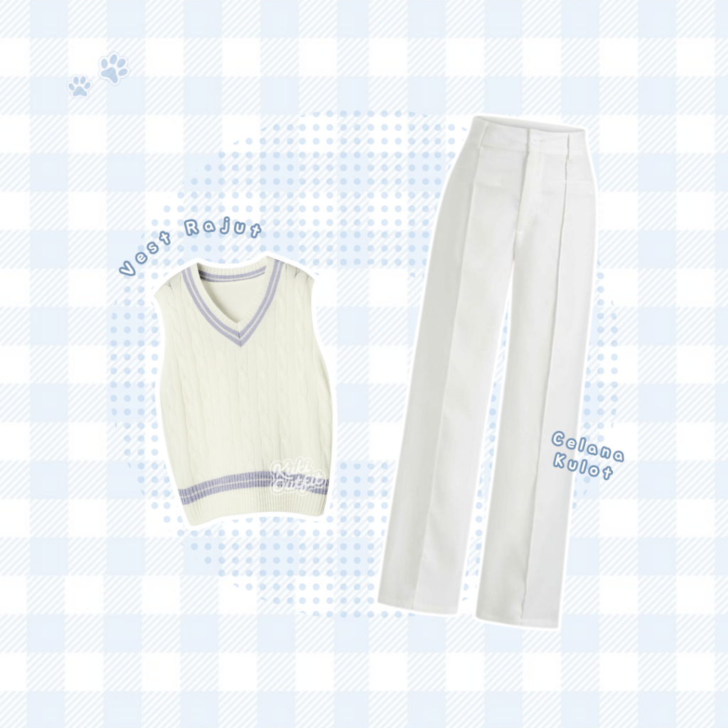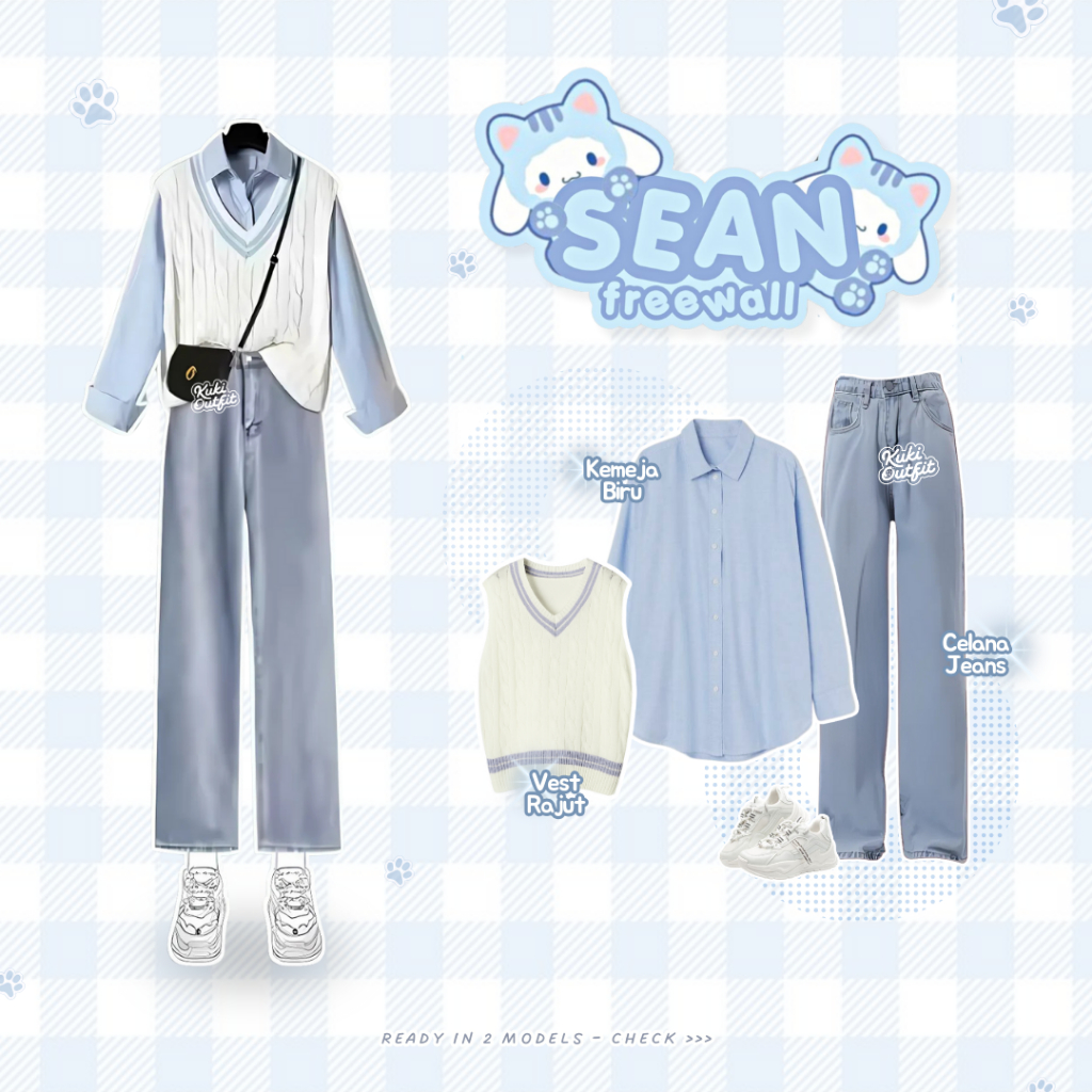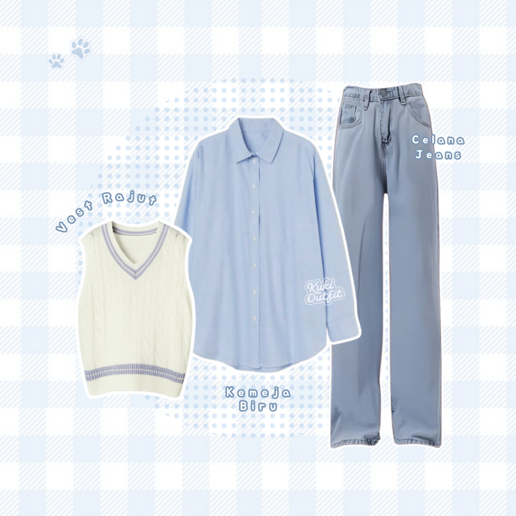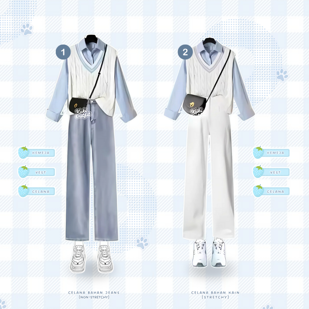 Kuki Outfit - Sean Baju Oneset Wanita (Kemeja, Vest Rajut BKK Celana Jeans) Korean Style Rompi KK248