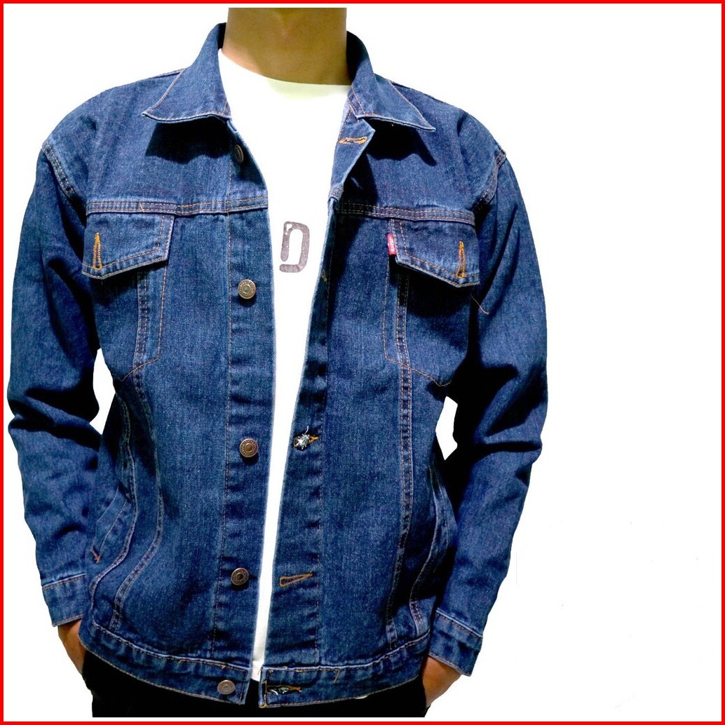 Jaket Jeans Pria Sandwash Hitam Denim Tebal M-xxxl