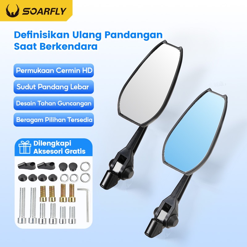 SOARFLY Spion Motor Cermin biru dan putih anti silau/ spion spion variasi universal semua motor spion lipat/dapat diputar 360 derajat