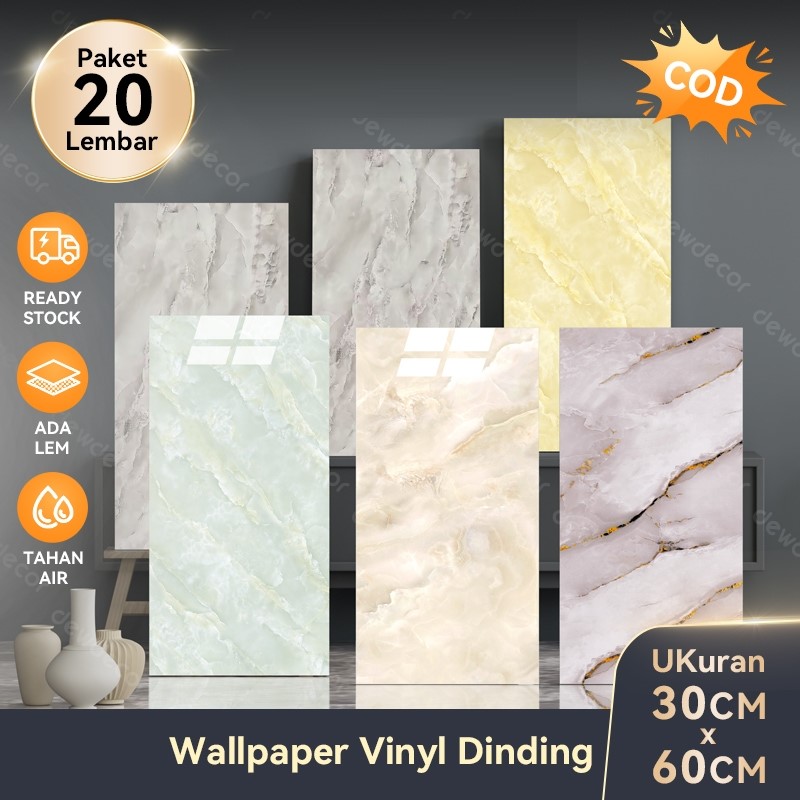 PAKET 20 LEMBAR Wallpaper Dinding Marmer 3d Foam 70x38 Dekorasi Kamar Rumah Dapur Vinyl Lantai Roll 10 Meter Pola Kayu