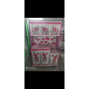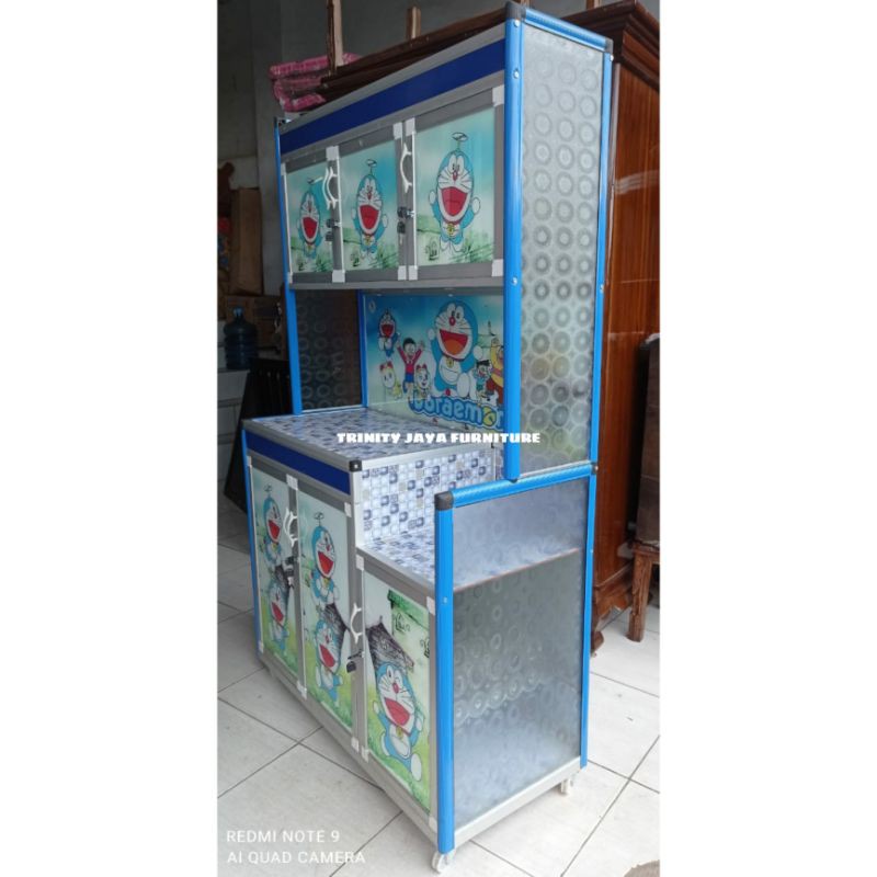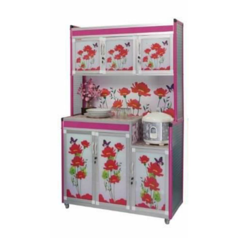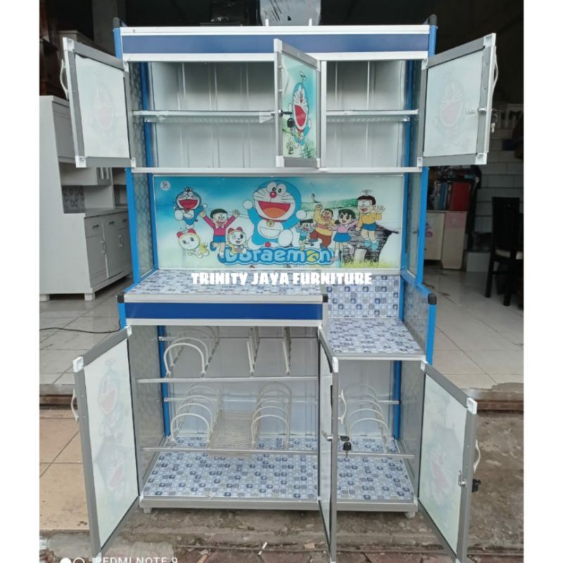 Lemari Rak Piring Almunium Kaca Keramik SUPER 3 Pintu Roda Belakang PLAT Tebal Kokoh Kuat