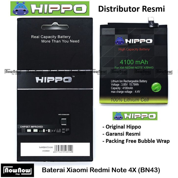 Baterai Hippo Xiaomi Redmi Note 4X Snapdragon BN43 Original Batre Batrai HP Garansi Resmi BN 43