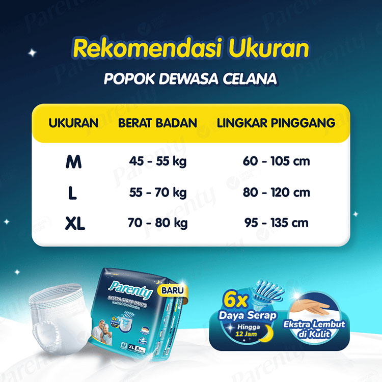 Pampers Dewasa Parenty Adult Pants Size L8 Pcs Popok Celana Lansia Manula Extra Serap 1 Packs