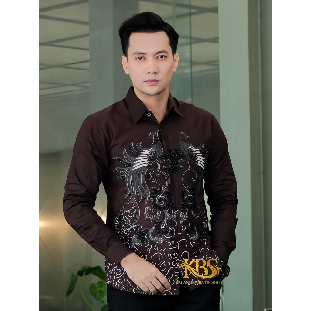WIRATAMA Coklat Mahogany Slimfit KALANDRA BATIK SOLO katun prima premium anak muda lengan panjang casual full furing adem batik kondangan