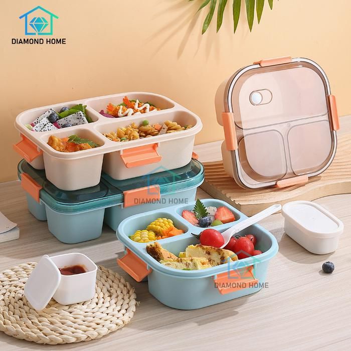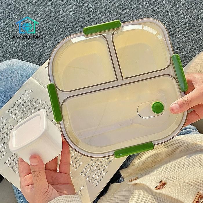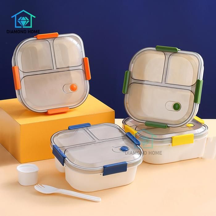 Kotak Makan Set Bekal Lunch Box 1100ml Anti Tumpah Bebas BPA Microwaveable - Krem