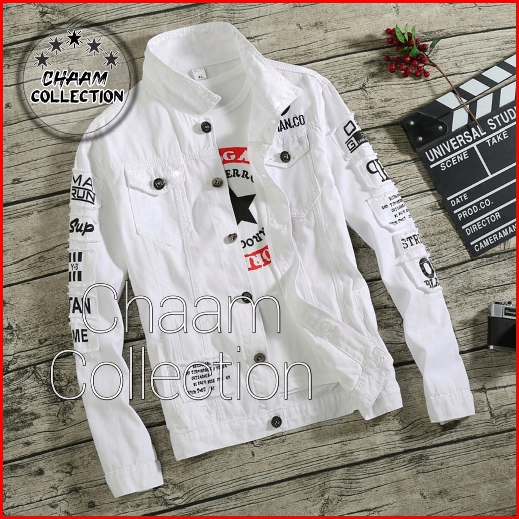 Jaket Jeans Warna Putih Jacket Denim Korean Style Motif Full Bordir Jaket Denim New Fashion Jaket Pria White