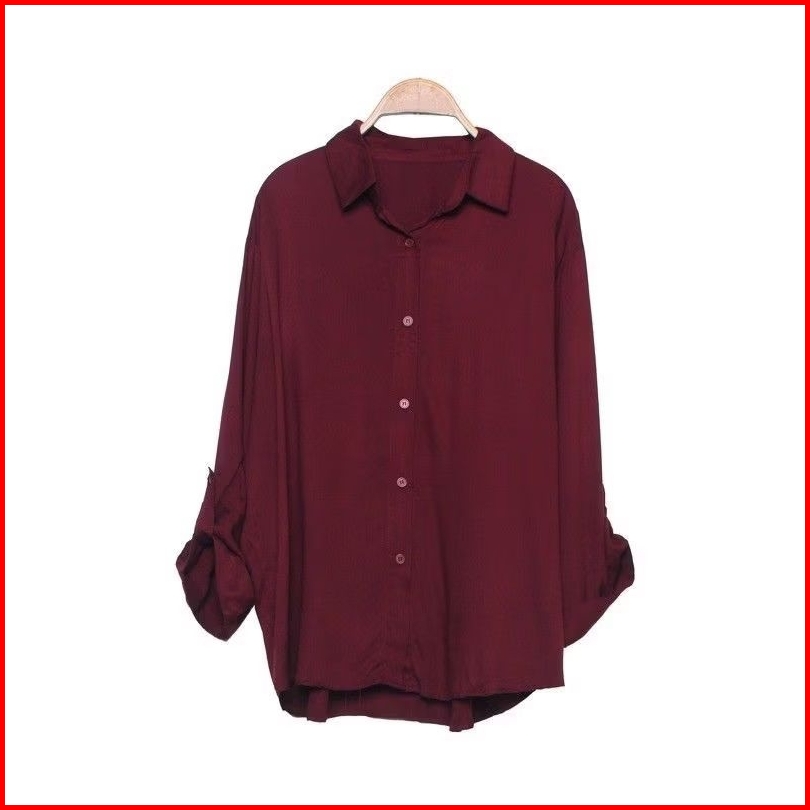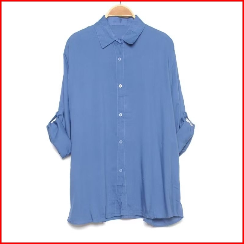 Kemeja Wanita Rayon Twill Adem Lengan Panjang Bisa Dilipat Kancing Aktif Kasual