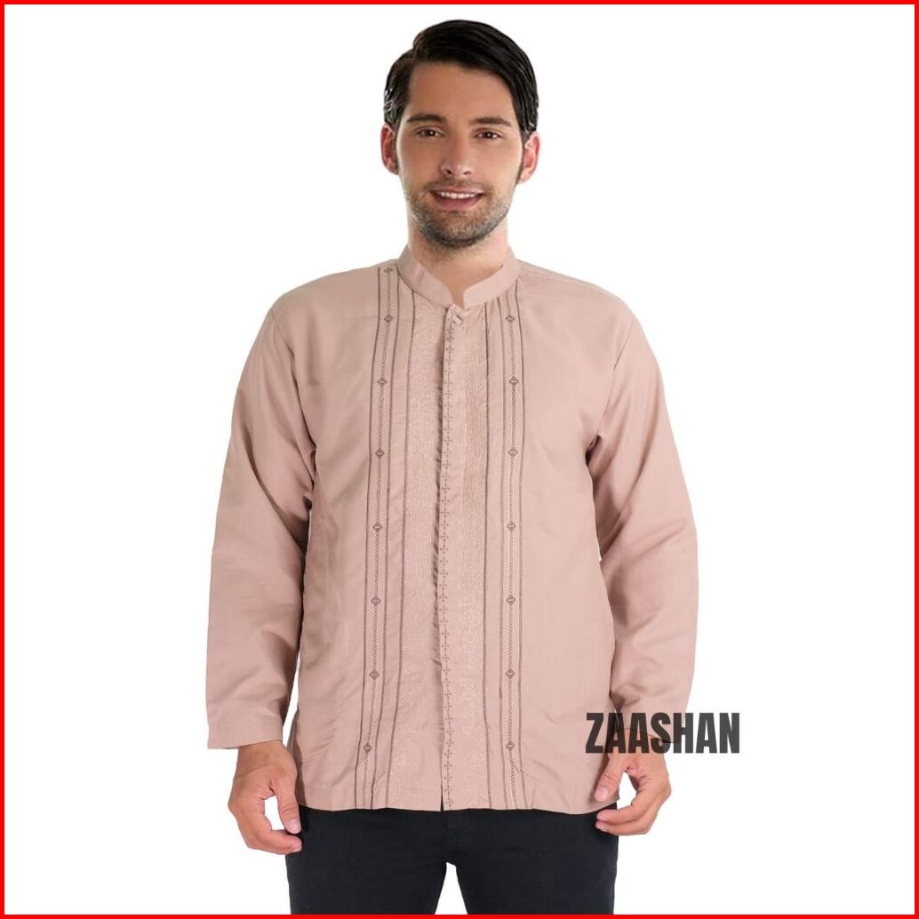 Zaashan Baju Koko Baju Muslim Lengan Panjang Motif Bordir Bahan Katun