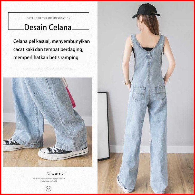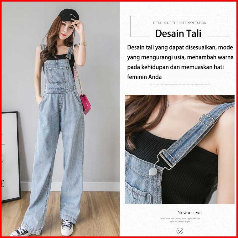 Overall Kaki Lebar Longgar Pinggang Tinggi Gaya Korea Wanita