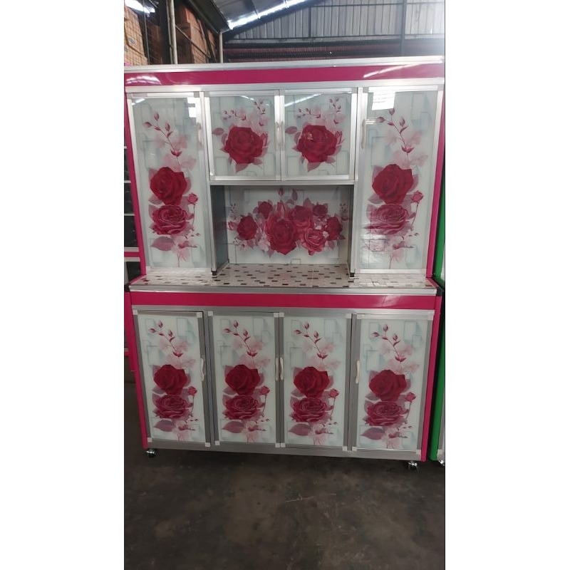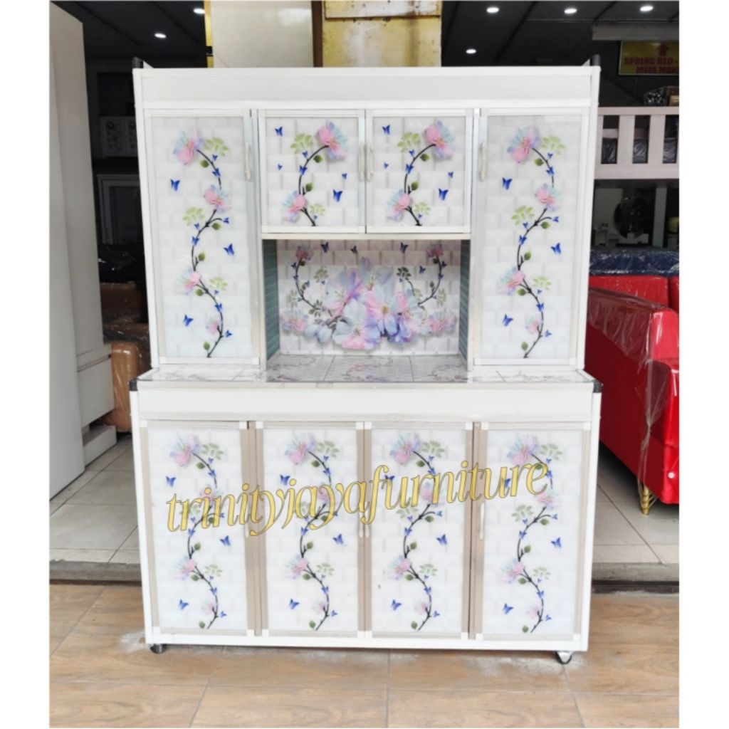 Lemari Piring Tiang Super Belakang Plat Bawah Keramik Roda