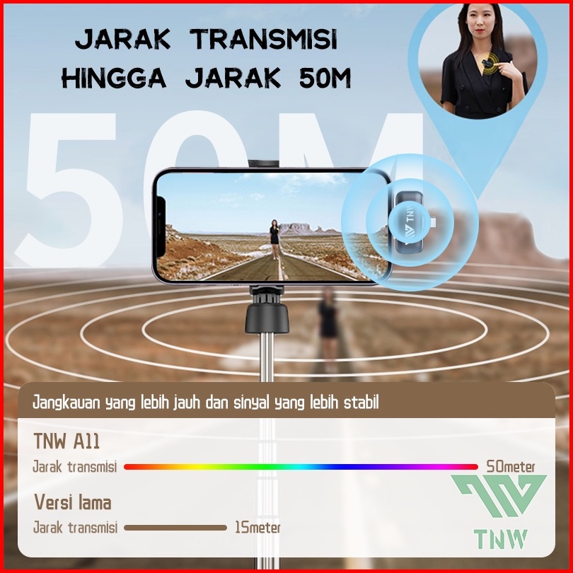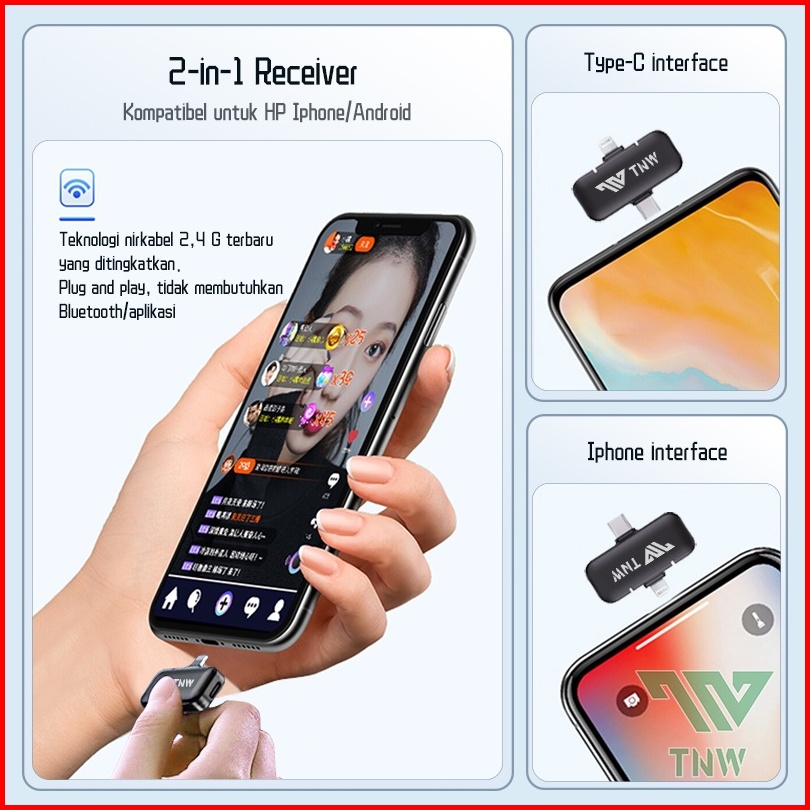 Tnw A11 Wireless Microphone 2-in-1 Clip On Mic Wireless Dual Mic Mikrofon Tanpa Kabel Untuk Youtuber Vlog Streaming
