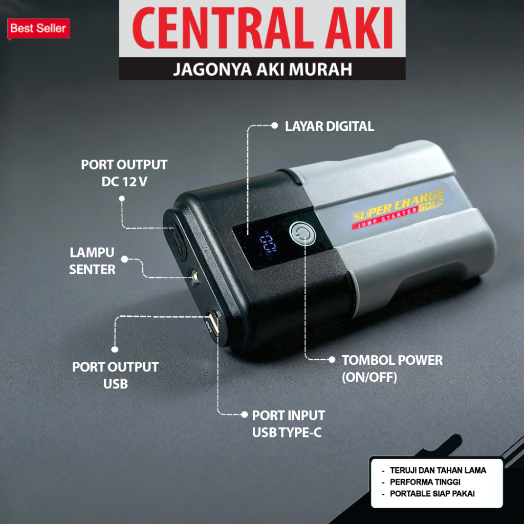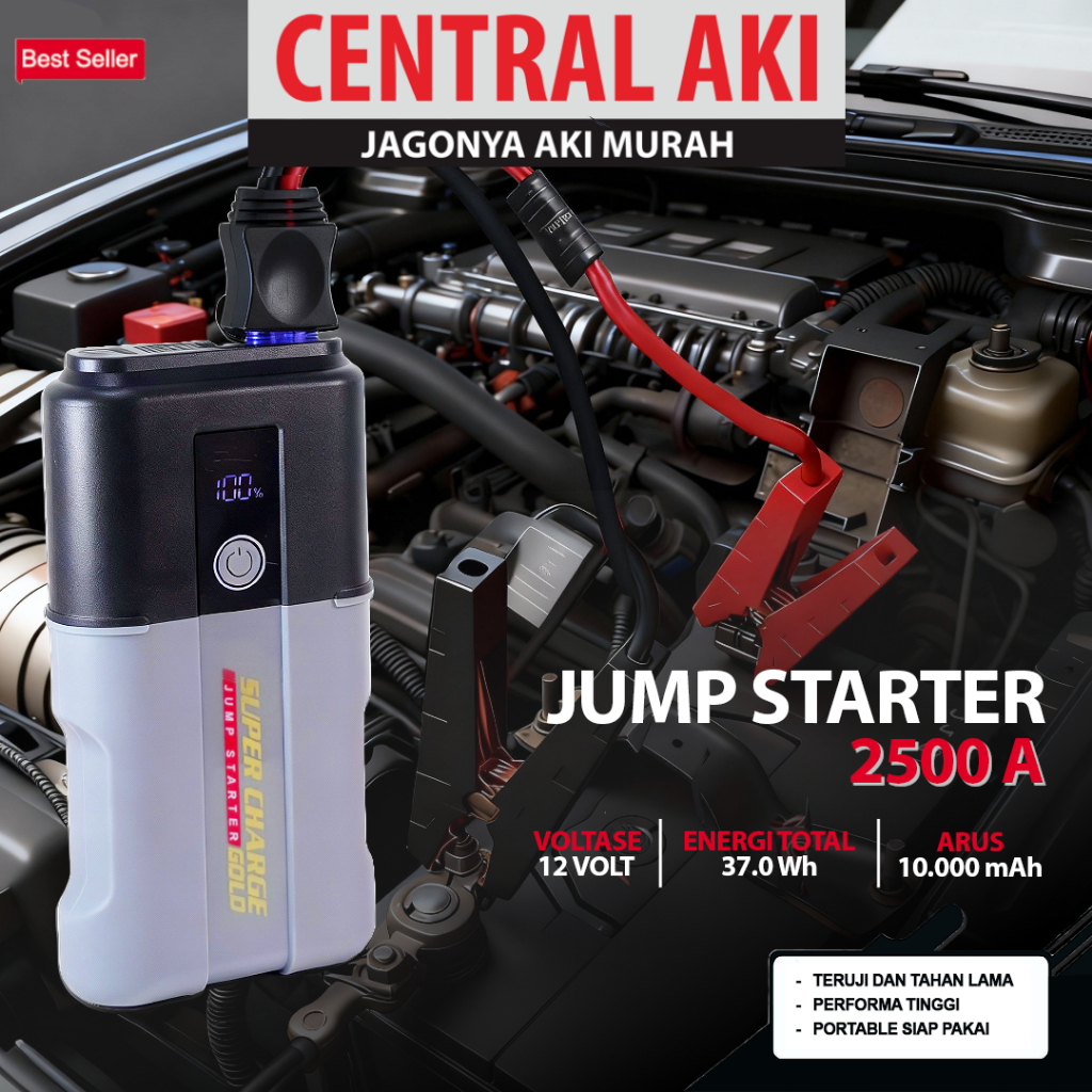 SUPERCHARGE GOLD Jumper PJS08A-2500 Kapasitas 10.000 mAh 37Wh Jump Starter Aki Mobil Motor Power Bank Jumper Aki Alat Ja