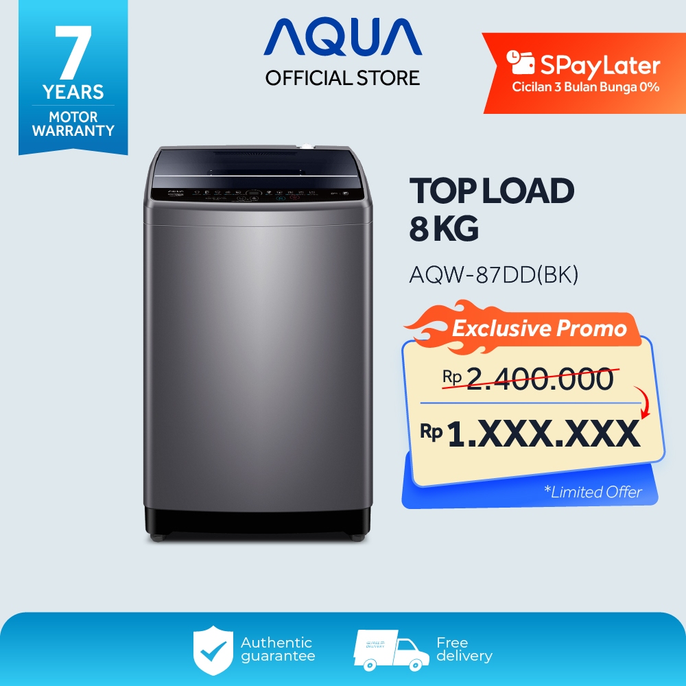 [Star] AQUA Elektronik AQW-87DD(BK) Mesin Cuci Top Loading 8 Kg - Fuzzy Control - Quick Wash - Pillow Drum - ABT Pulsator - Tub Clean