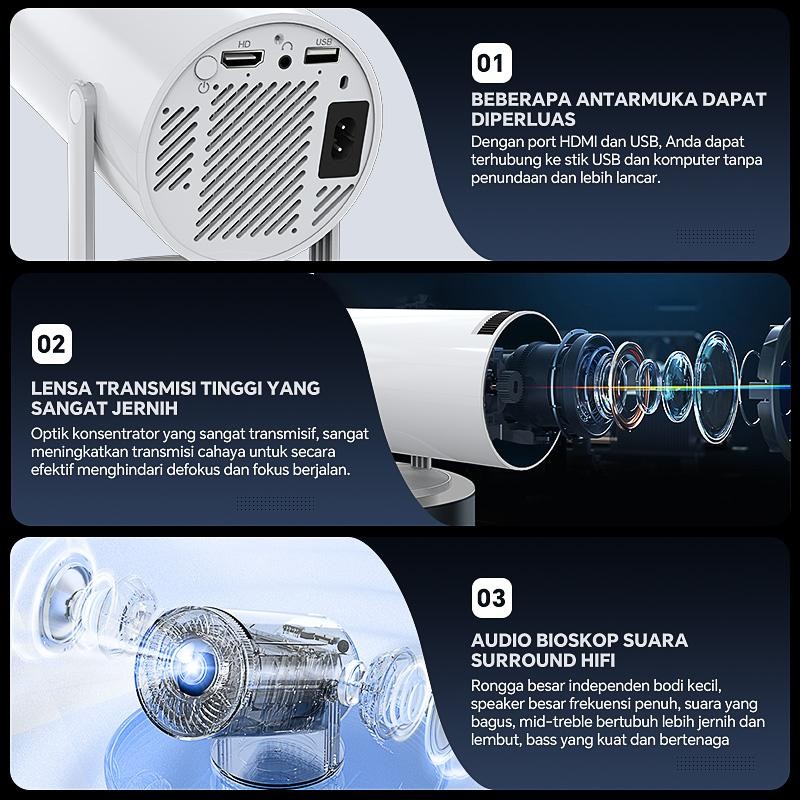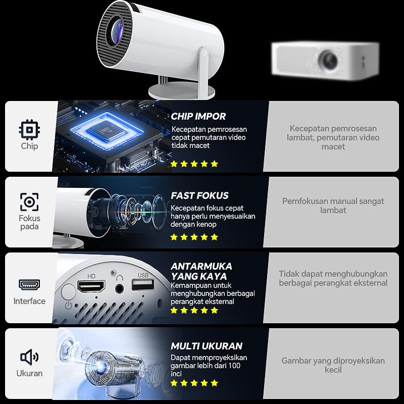 Ready HY300 Pro Proyektor 4K Kamar Tidur Rumah Proyektor 5G Kotak Android Kotak Android Teater Rumah TV Kecil Lcd smart