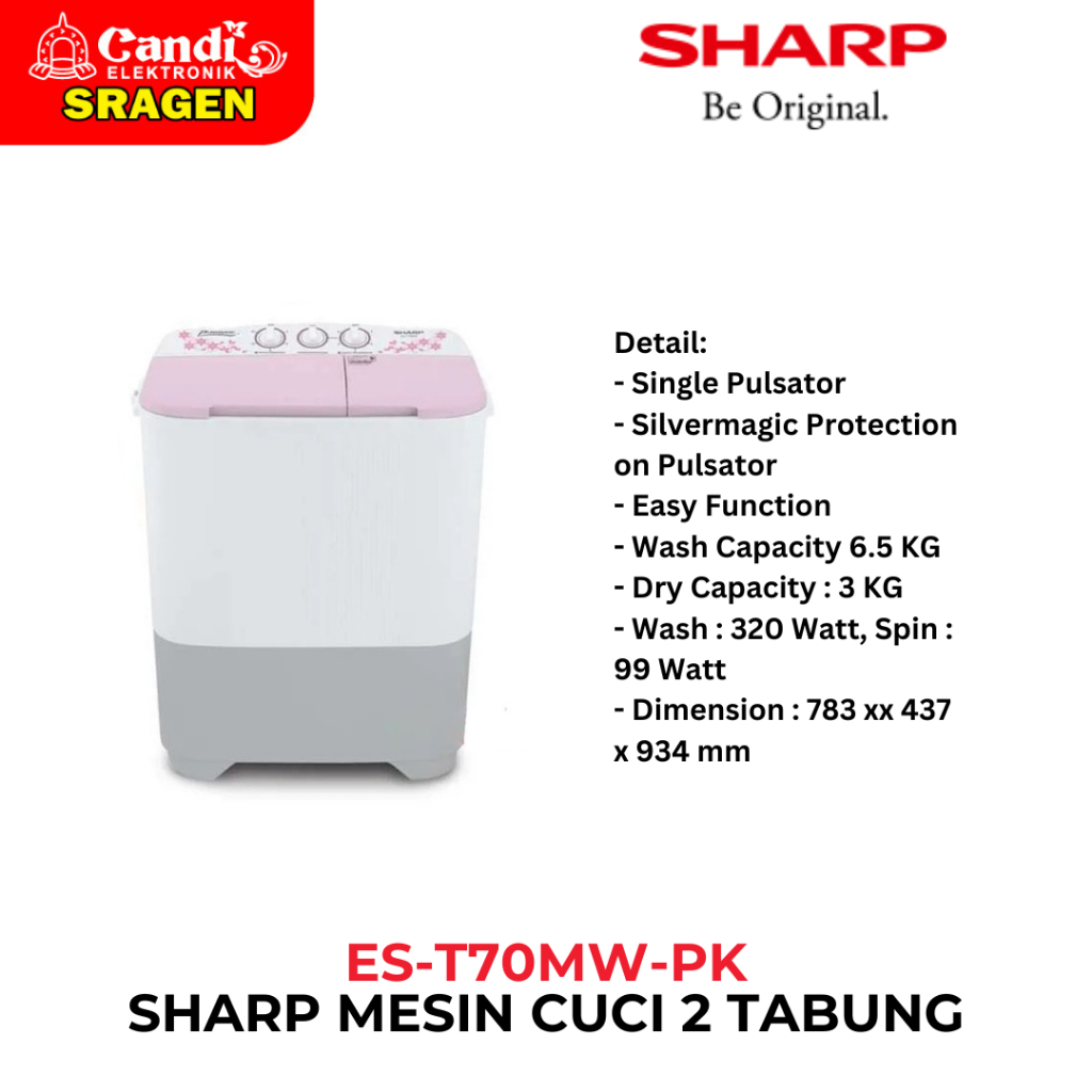 [Star] SHARP Mesin Cuci 2 Tabung 6,5 Kg - ES-T70MW-PK